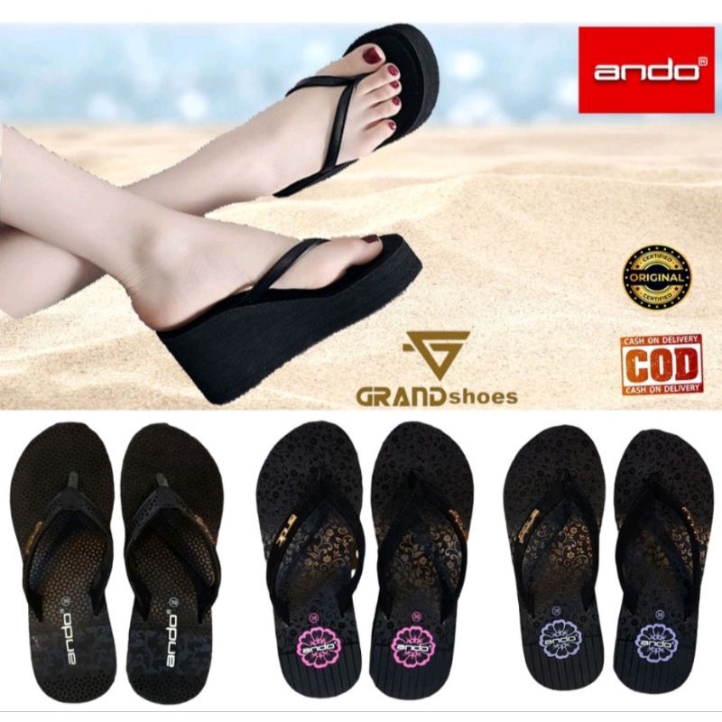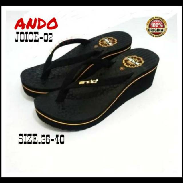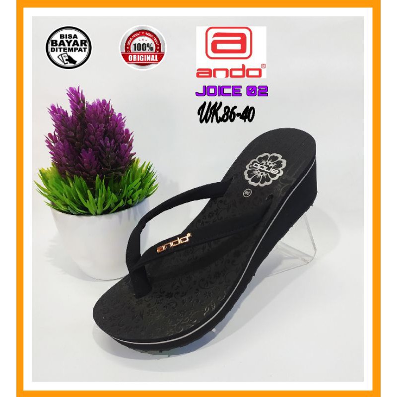 ANDO Sandal Jepit Wanita Cewek Hak Wedges Datar Tinggi Spons Karet Sendal JOICE 02 Hitam Size 36-40