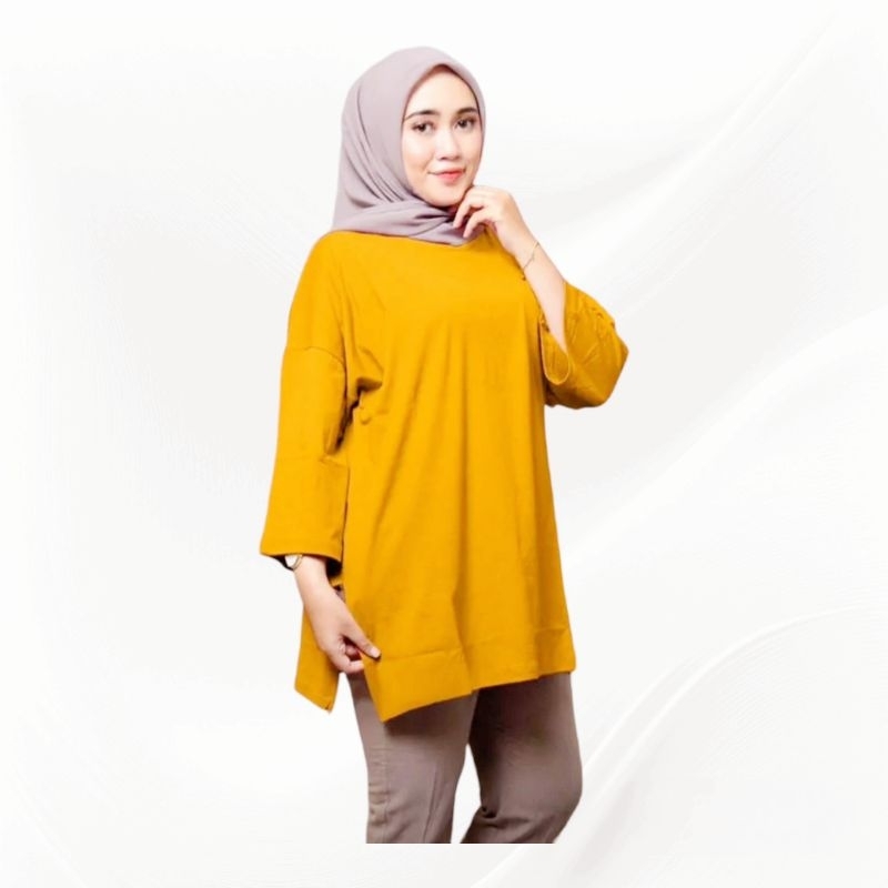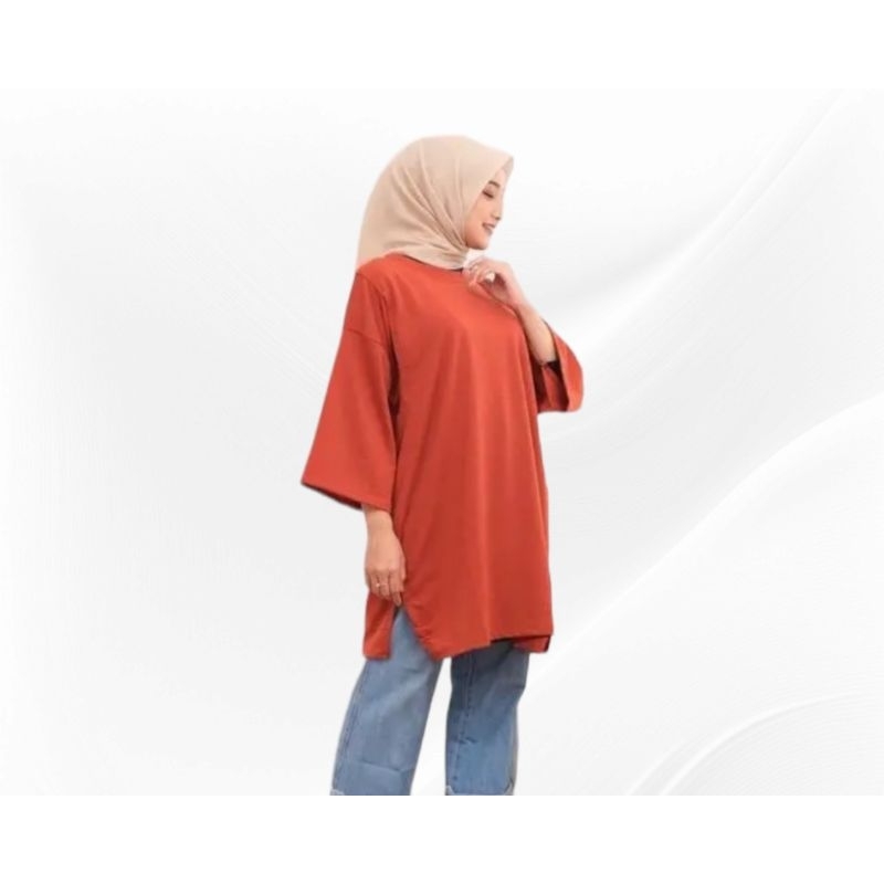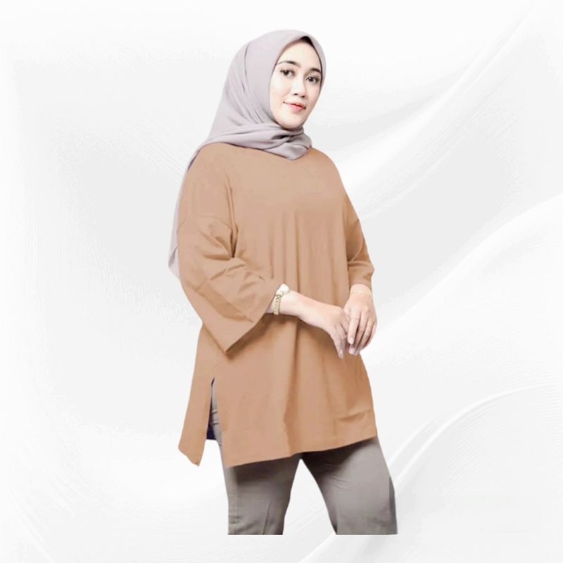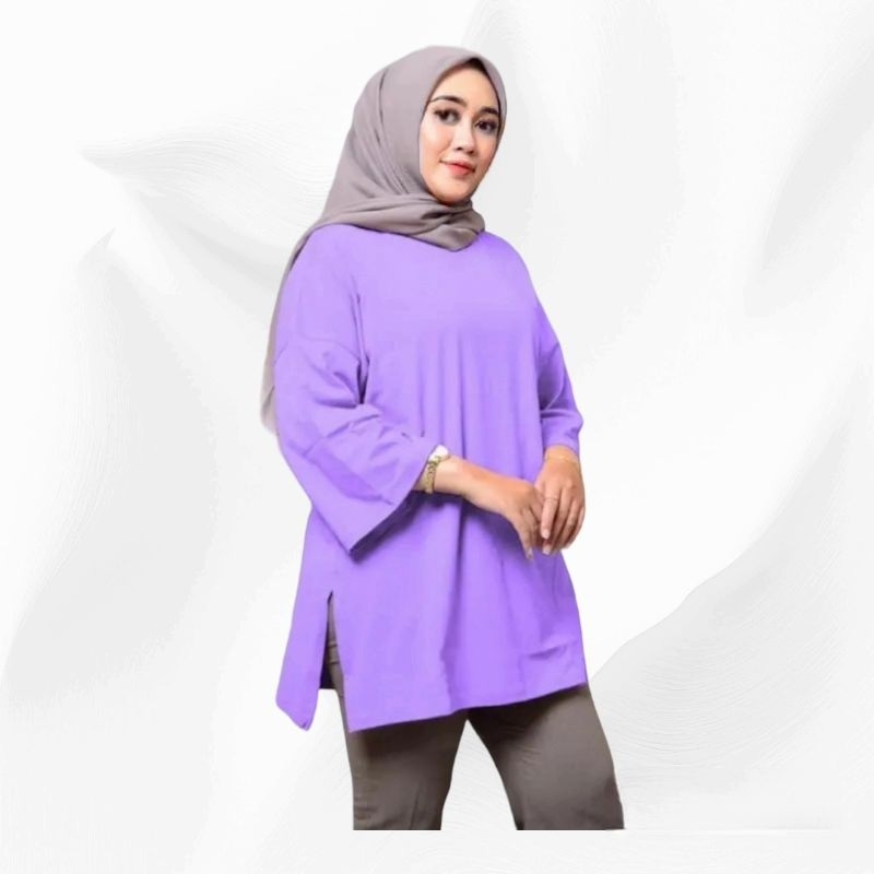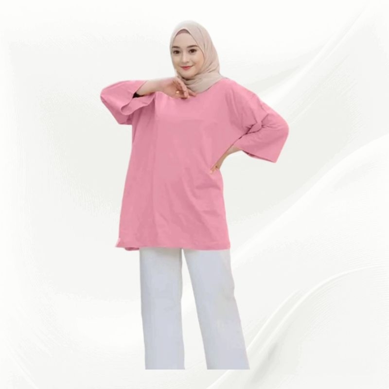 Atasan Oversize Kaos Oblong Jumbo Atasan Wanita Bahan Babytery Ld130 Lengan 3/4 Atasan Hijab Muslimah