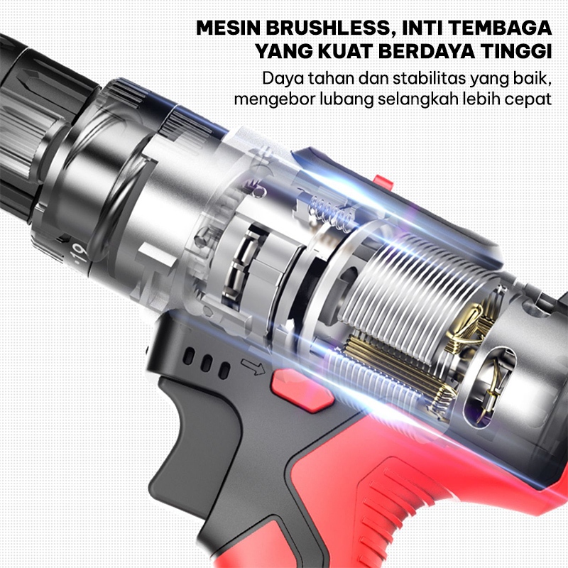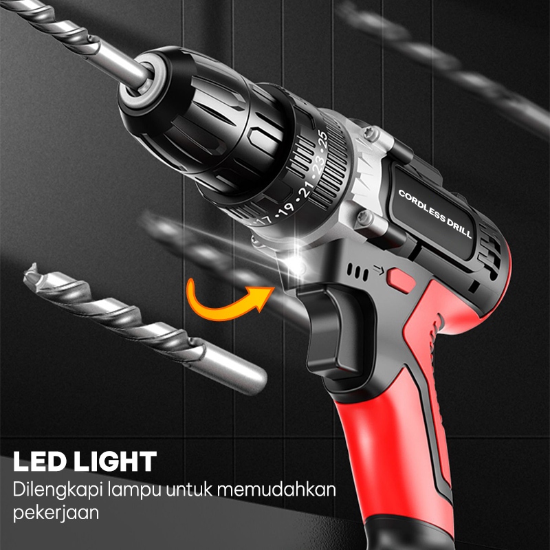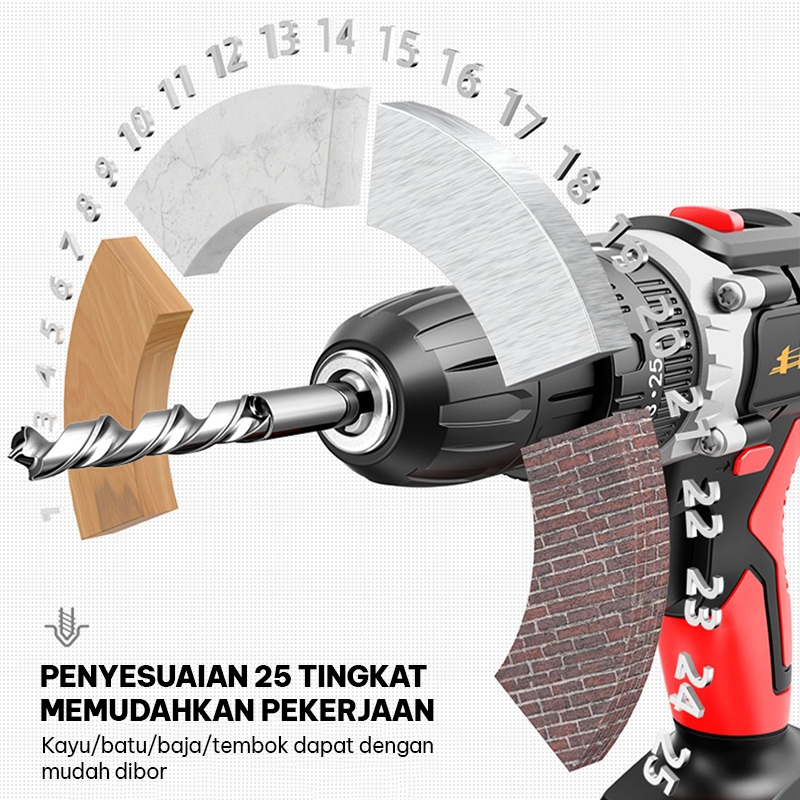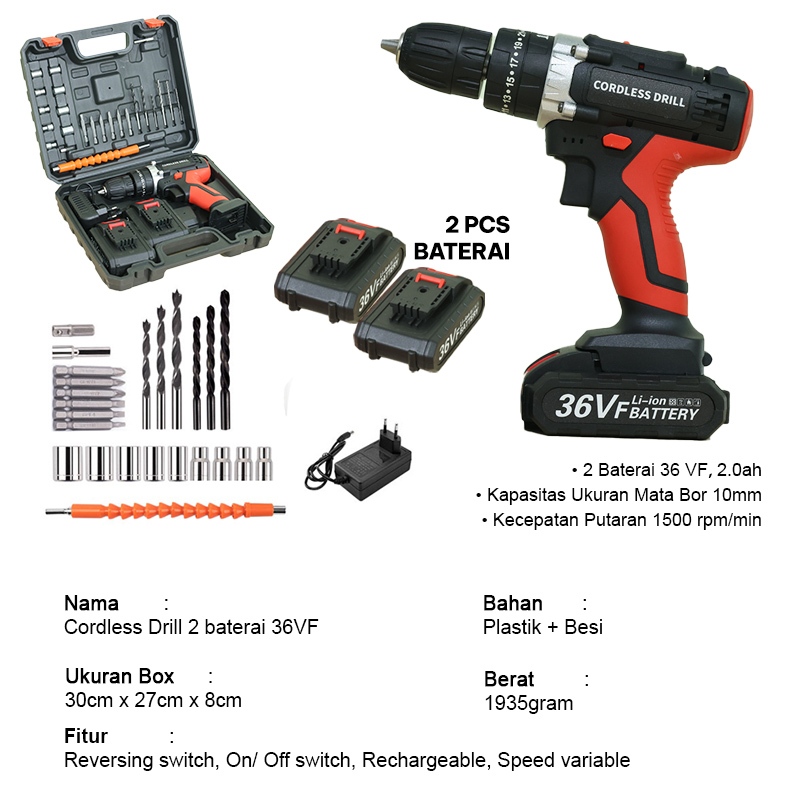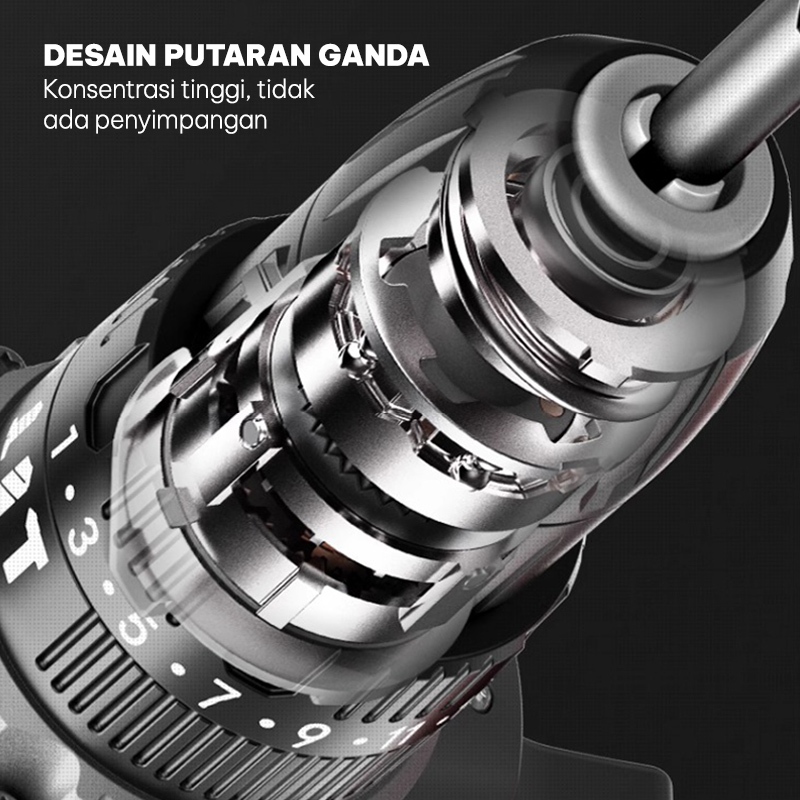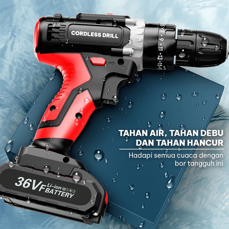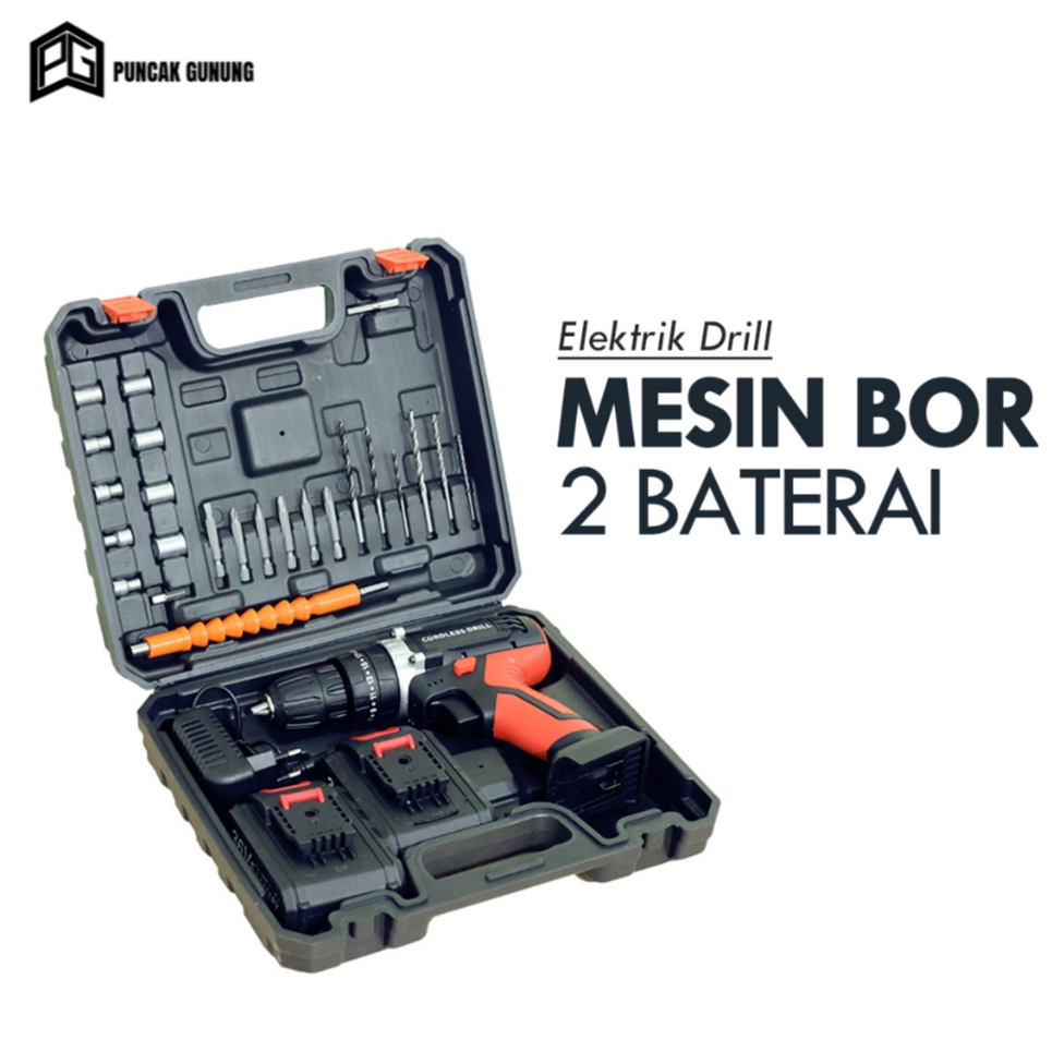 Mesin Bor Tangan Cordless Drill 2 Baterai 36V Fullset Koper Besi Tembok Cas Listrik Tool Kits - G11A1/G11B1