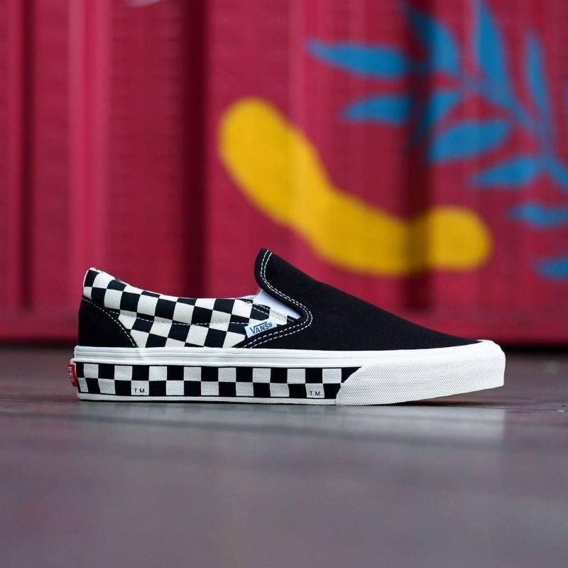 [Mall] Sepatu Vans Slip On Sidewall Checkerboard Black White Original