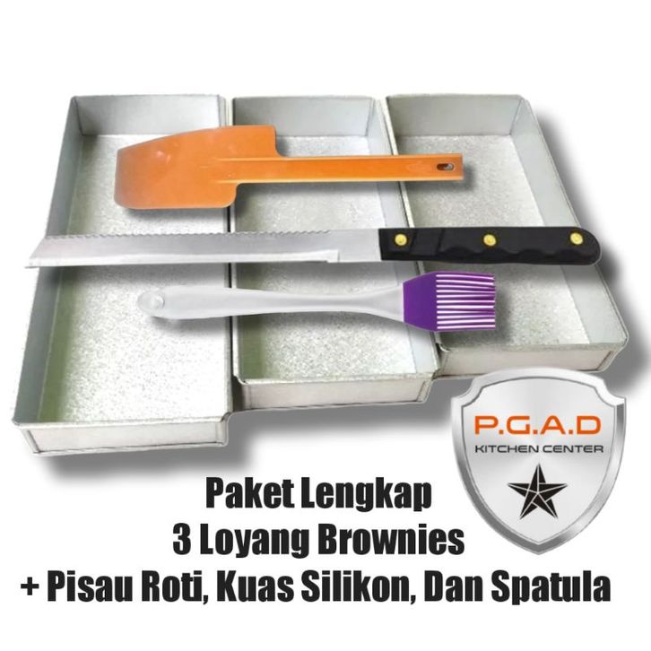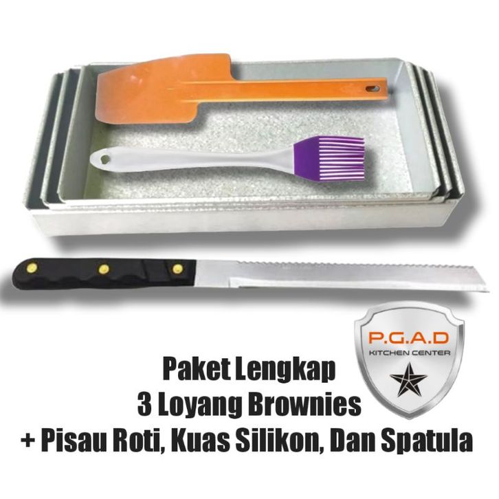 3 Loyang Cetakan Brownies Paket Lengkap + Alat Baking Loyang Cetakan Bownies Persegi Anti Karat