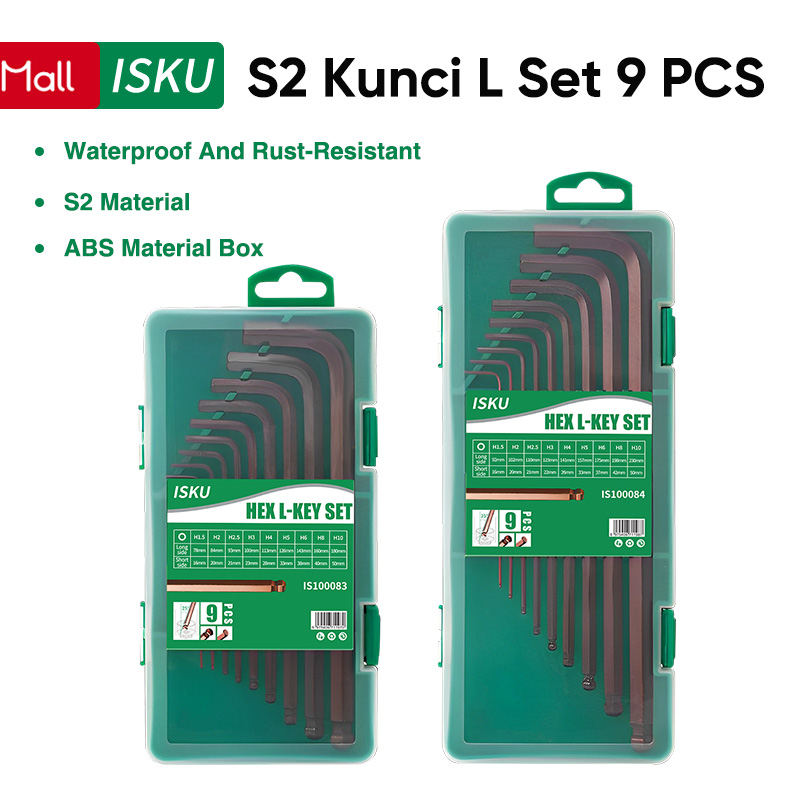 Kunci L 1 Set Kombinasi 9Pcs Bahan S2 Hex Key Set Lengkap/Flat End Hex Key 9 Pcs Kunci L Set
