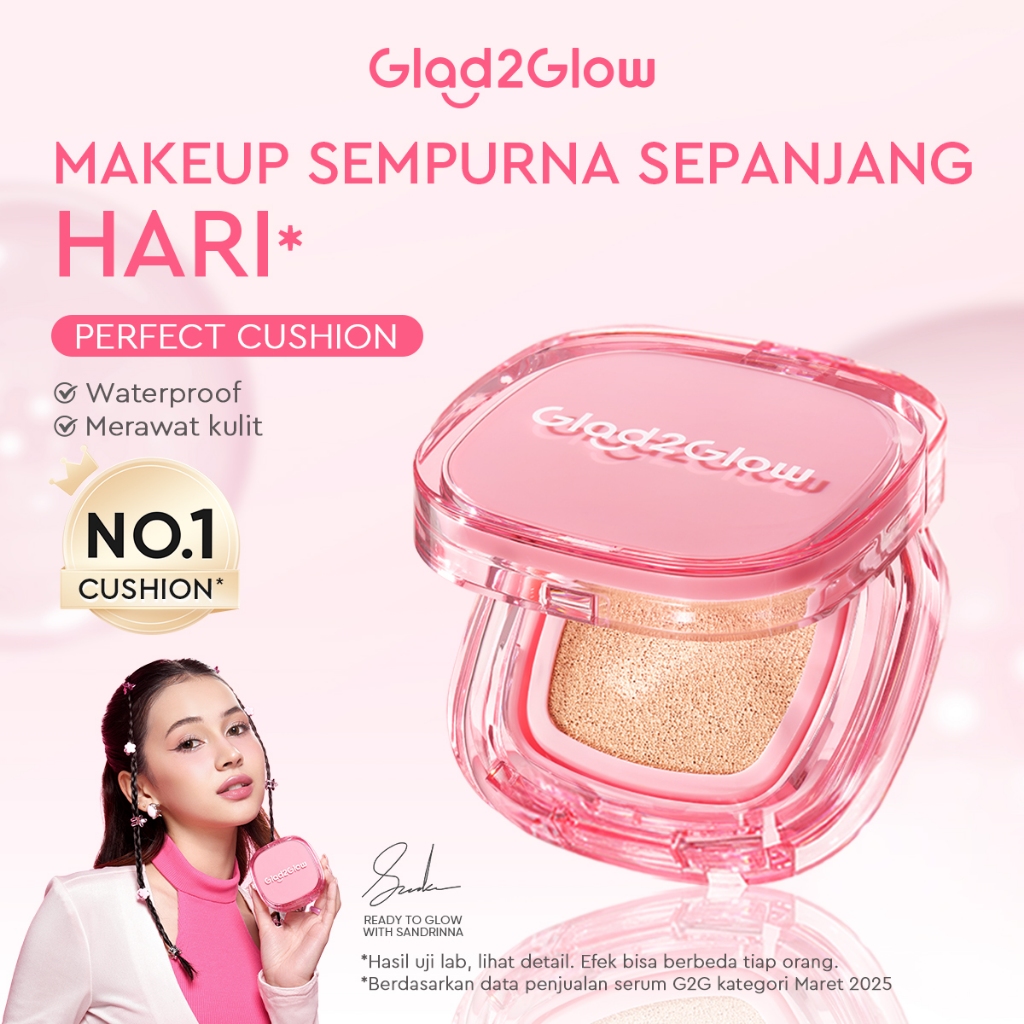Glad2Glow Perfect Cover Cushion Foundation Waterproof Make Up Setting Concealer BB Cream Tahan Lama Hingga 12 Jam