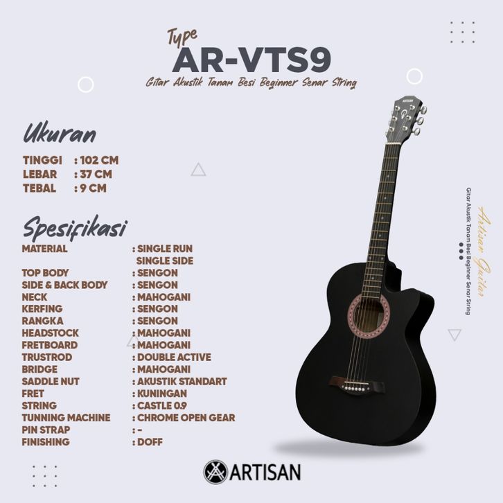 GITAR AKUSTIK TANAM BESI BEGINNER AR - VTS9 SENAR STRING GUITAR