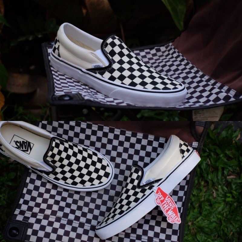[Mall] Sepatu Vans Slip On Classic Checkerboard Black White Original