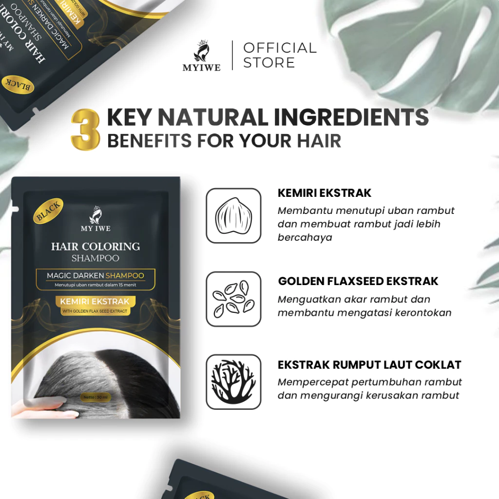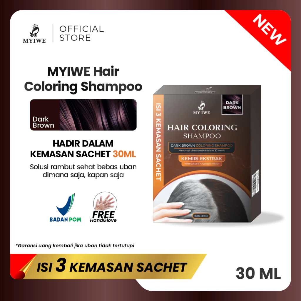 Myiwe Shampoo Penghilang Uban / Penghitam Rambut Uban Original 1 Box Isi 3 Sachet