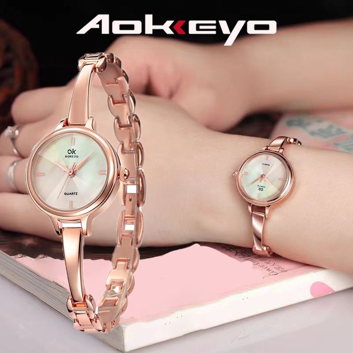 Jam Tangan Wanita Santai Tahan Air Untuk Baja Penuh Gelang Kuarsa Jam Tangan Gelang Cewek AOKEYO W188