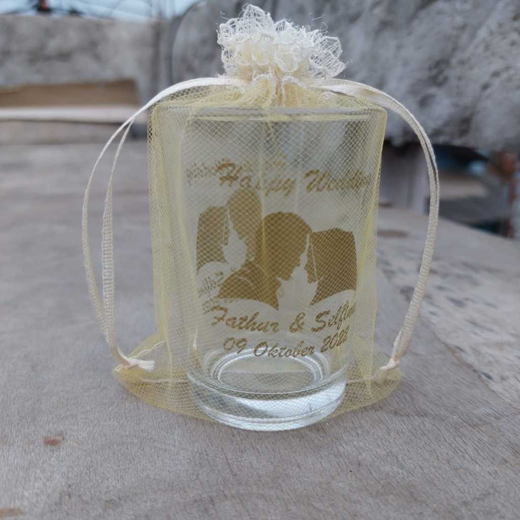 Paket Souvenir Pernikahan Gelas 50pcs Free Sablon Souvenir Gelas Jamu Lu Bening Kemas Box Sovenir Pernikahan Ulang Tahun