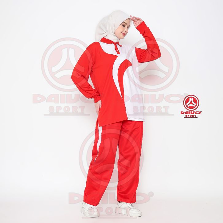 Setelan Baju Senam Merah Putih / Setelan Baju Olahraga Pria dan Wanita Daivo