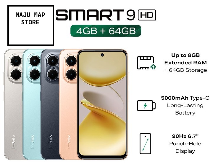 Infinix Smart 9 HD 4/64GB - Up to 8GB Extended RAM - 6.7 inch 90Hz Punch Hole Display - Helio Octa Core - 5000 mAh