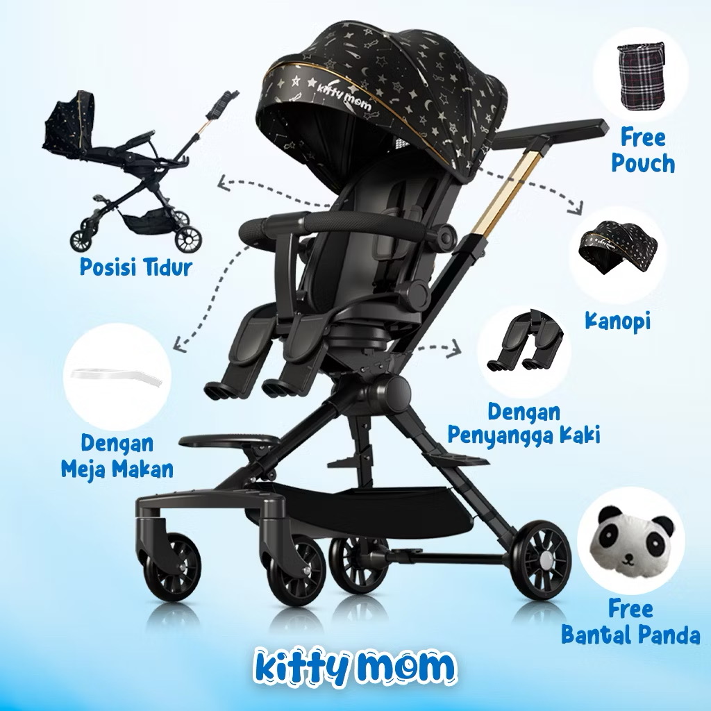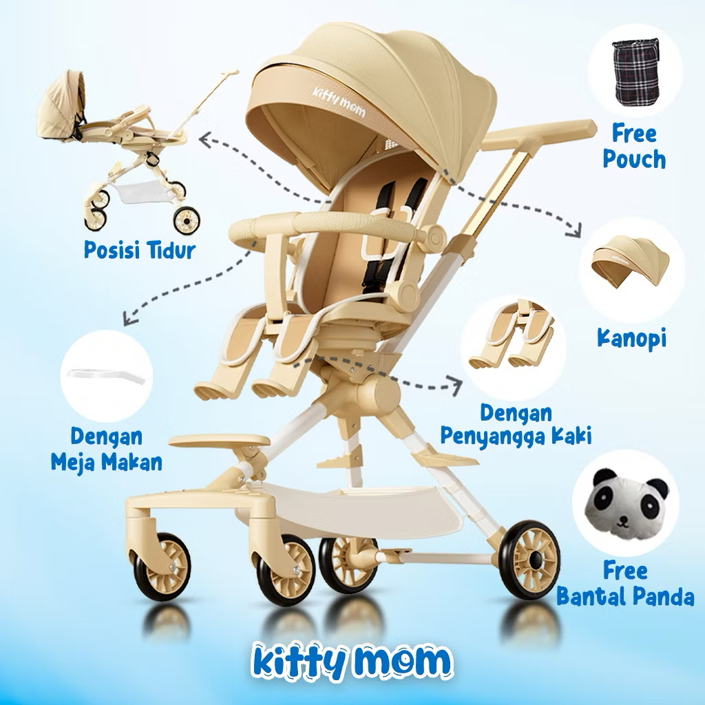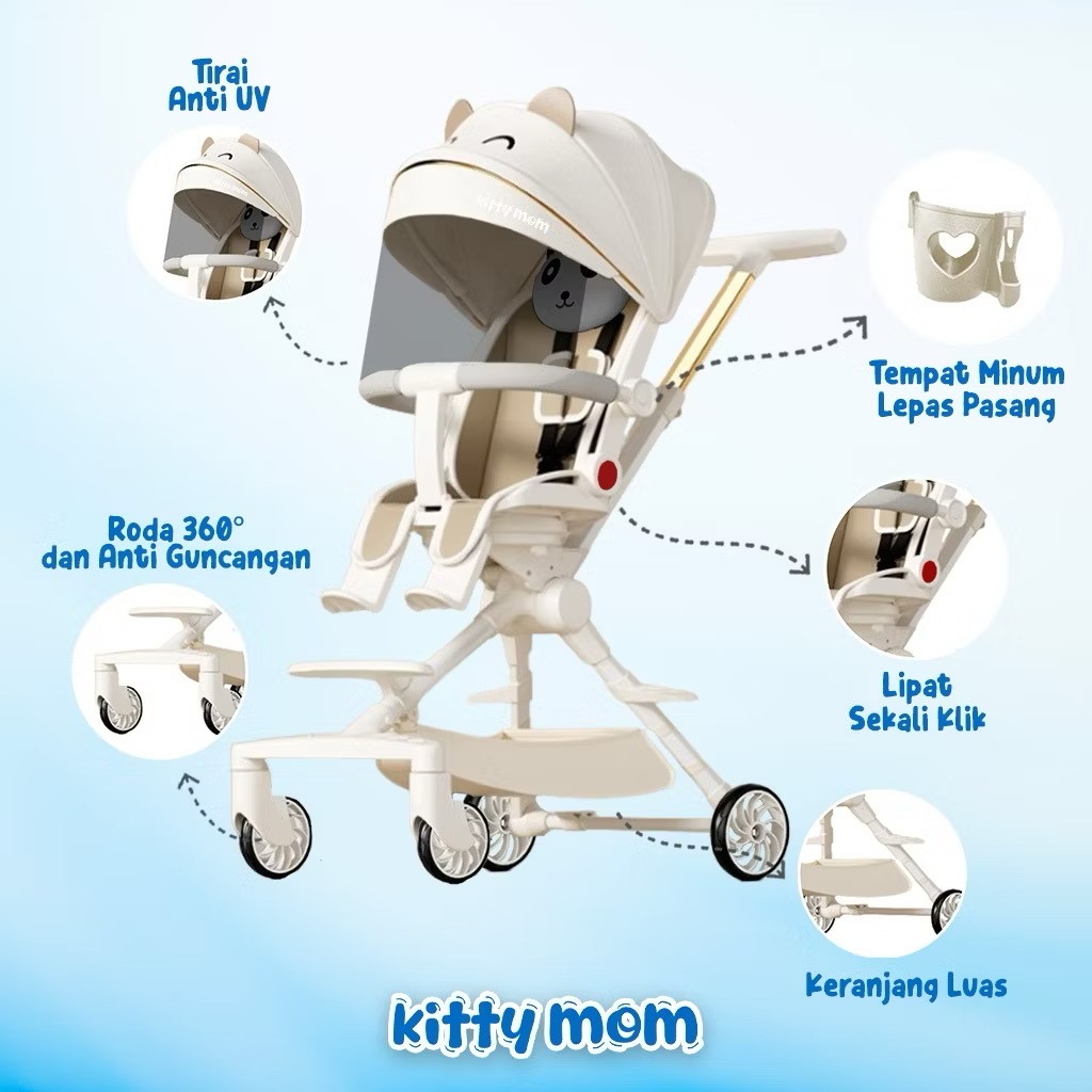 Kitty Mom Stroller Baby Bayi Travelling 2 Arah Newborn | Kereta Dorong Anak Lipat | Stroler