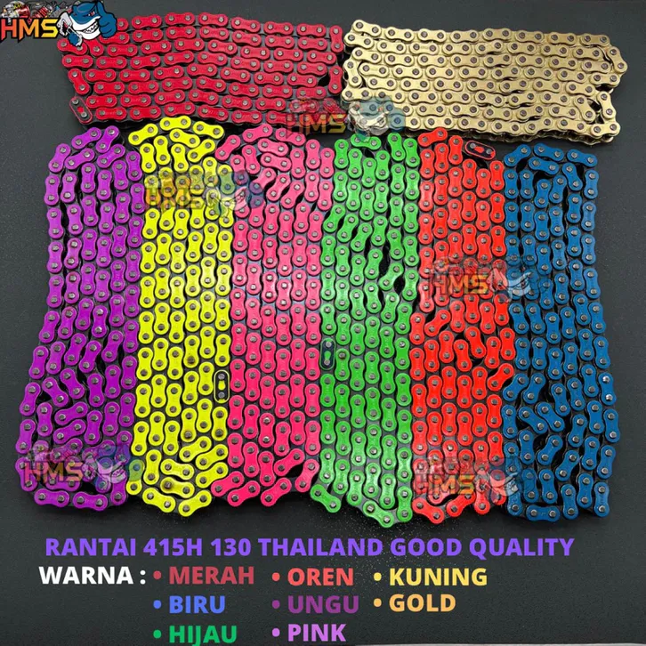 Rantai Motor 415H 130 Thailand Warna Warni Bisa Buat Gear SSSS Merah Hijau Kuning Biru Ungu Pink
