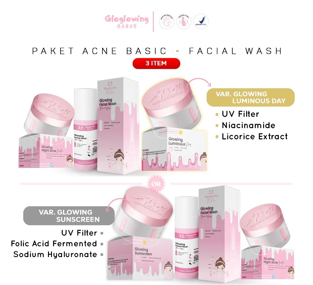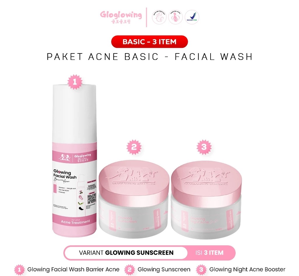 Gloglowing Official Store | GLOGLOWING Paket Acne Basic - Facial Wash "3 item"