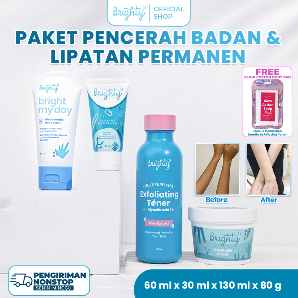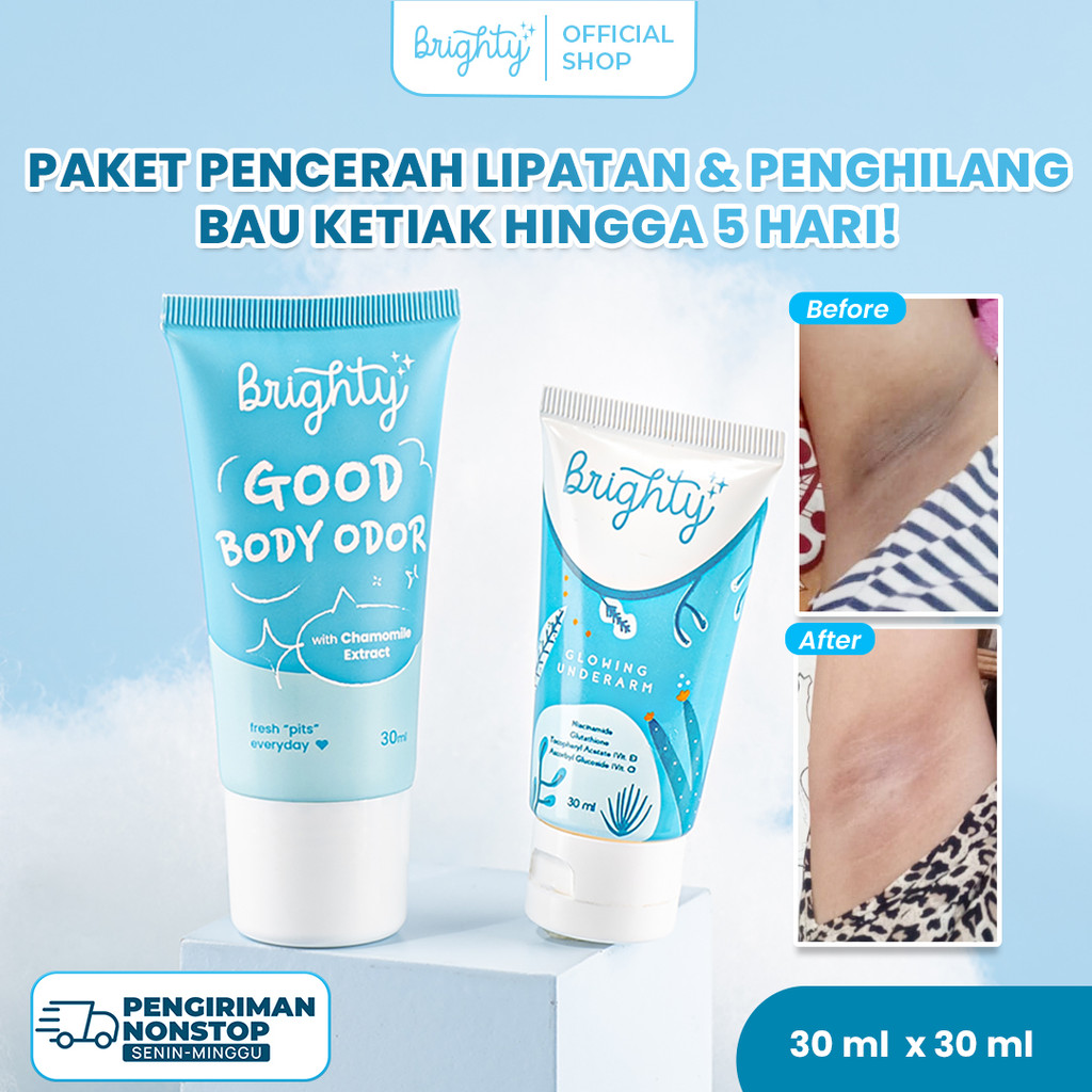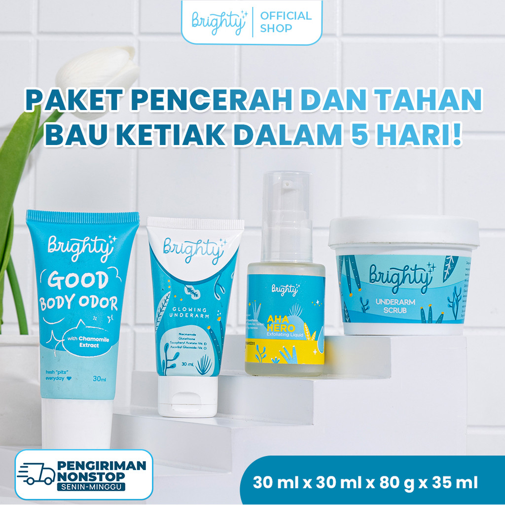 Glow & Bright Bar Soap sabun pencerah, 2 pcs Glow & Bright Bar Soap sabun pencerah, 3 pcs Glow & Bright Bar Soap sabun pencerah, Swipe Removal Cream Waxing Ketiak Perontok Bulu, Glowing Body Slime Mask Masker Badan Pencerah, Charcoal Underarm Masque Detoksifikasi Ketiak , Multipurpose Exfoliating Toner Pemutih badan, Good Body Odor Anti Perspirant , Aha Hero Serum Pemutih Dan Pencerah Ketiak, Whipped Mousse Body Serum, Good Body Odor Anti Perspirant For Sensitive Skin, AHA Whitening Concentrate Booster Serum, Glowing & Moisturizing Body Serum Pencerah Tubuh, Charcoal Underarm Masque Masker ketiak, Post Shaving & Waxing Gel Penghambat Tumbuh Bulu, Underarm Scrub Microscrub Pencerah Ketiak, Bright My Day BMD Niacinamide Body Wash 300 ML, Glowing Underarm Pemutih Ketiak No.1, 20% AHA BHA PHA LHA Peeling Solution Pencerah Kuli, Multipurpose Exfoliating Toner X Glowing Underarm, Swipe Removal Cream X Post Shaving & Waxing Gel, Glow & Bright Bar Soap X My Day BMD Body Wash, Bundle Toner+Glowing Underarm+Scrub+Body Wash, Glowing Underarm X Underarm Scrub, Aha Hero Serum+Glowing Underarm+Underarm Scrub, Peeling Solution X Brighty Glow & Bright Bar Soap, Charcoal Underarm Masque X Glowing Underarm, Charcoal Underarm Masque X Exfoliating Toner, Bright My Day (BMD) Series Bundling Besar, Bright My Day (BMD) Series Bundling Kecil, Good Body Odor X Glowing Underarm, Glowing Underarm X Aha Hero Serum, Waxing Srip Kit Hair Removal, Post Shaving & Waxing Gel & Glowing Underarm, Aha Hero Serum X Glowing Underarm X Underarm Scrub, Bundle Exfo Toner+Glowing Underarm+Scrub+Body Wash, Whipped Mousse Body Wash & Body Serum Sabun Mandi, Underarm Masque X Glowing Underarm X Underarm Scru, Bundle Glowing Underarm + Good Body Odor Perspiran, Good Body Odor+Glowing Underarm+Scrub+Aha Hero, Exfoliating Toner X Brighty Bright My Day BMD, [bundle Glowing Brighty Glowing Underarm 2 Pcs, [glowing Package] Brighty Glowing Underarm 3 Pcs, (Bundle 2 Pcs) Brighty Aha Hero Exfoliating Liquid, 2 Pcs Bright My Day BMD Niacinamide Body Wash 300m]