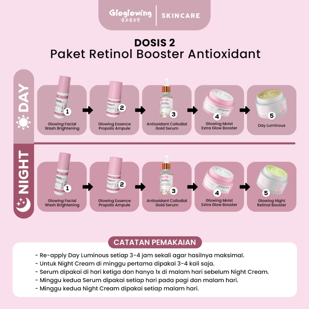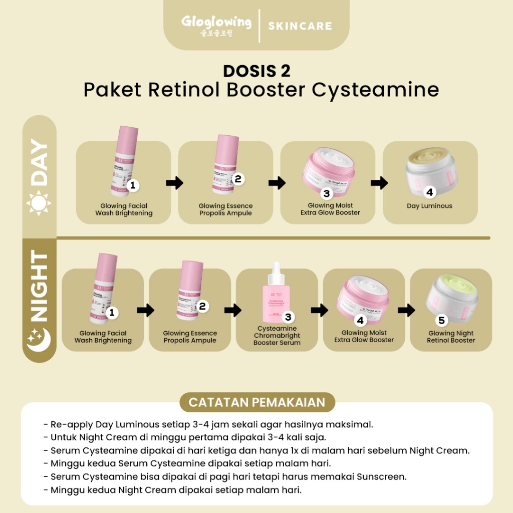 Gloglowing Official Store | GLOGLOWING DOSIS 2 - Paket Retinol Booster Cysteamine / Antioxidant - Gloglowing Skin Care