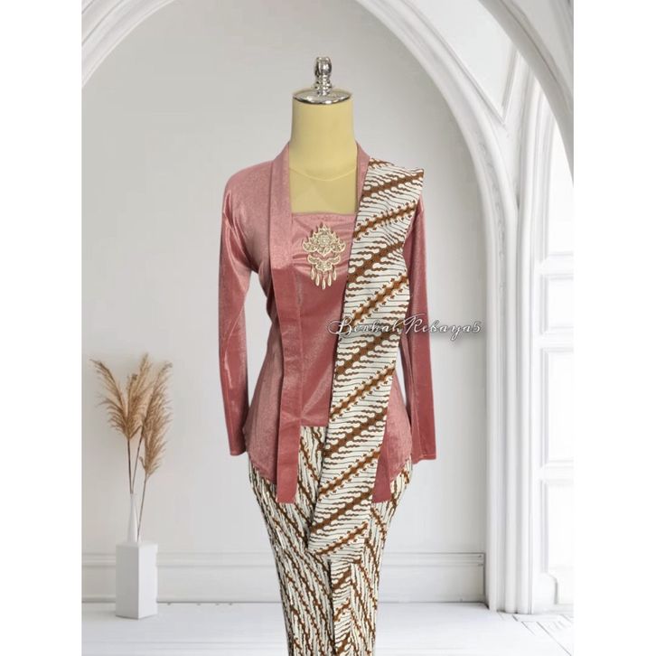 TERMURAH Setelan Kebaya Kutu Baru Rose Gold Liris Putih / Kebaya + Jarik + Selendang asegg