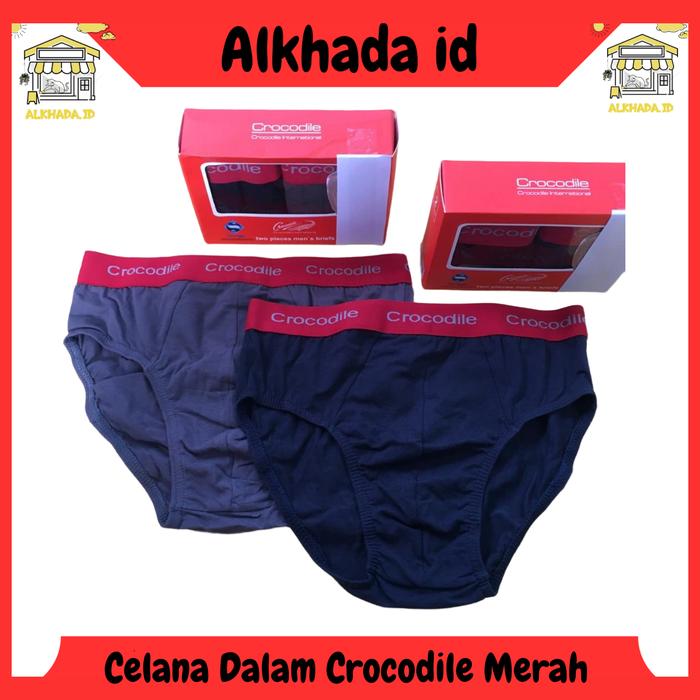 Celana Dalam Pria Dewasa 4Pcs / 2Box Celana Dalam Laki Laki Dewasa Bahan Katun Merk Crocodile Merah