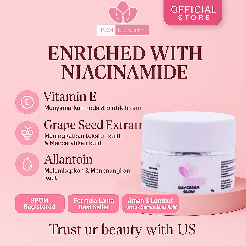 PRM LUXURY Day Cream Glow – Krim Siang Glowing & Cerah Natural – Formula Lama Aman & Efektif