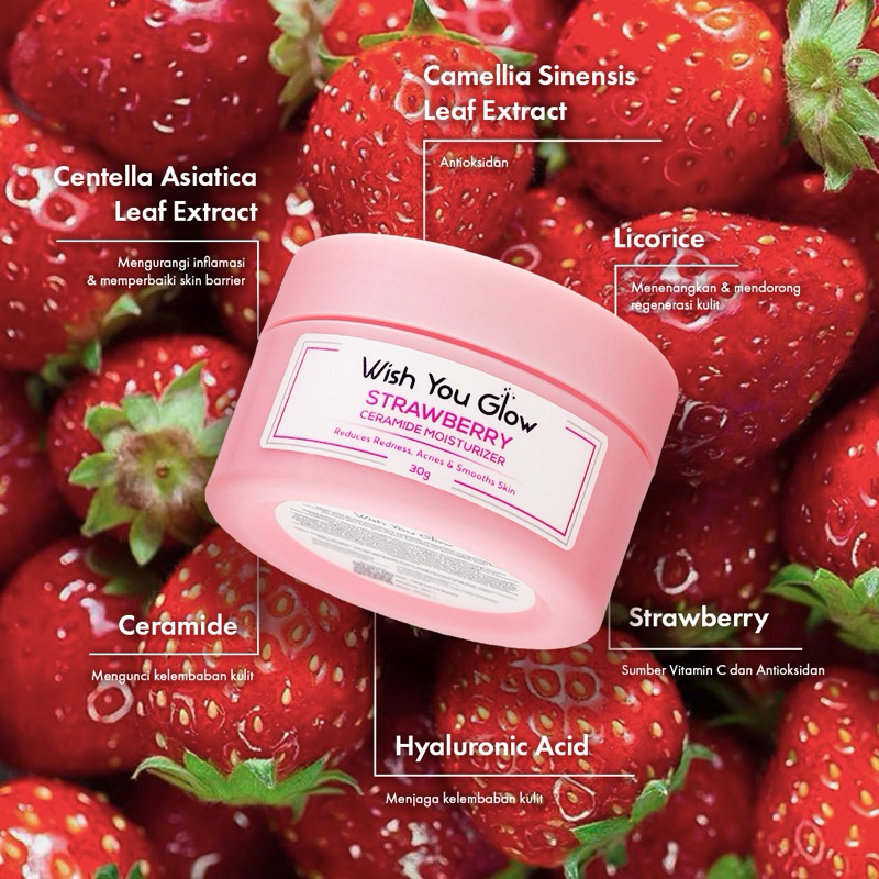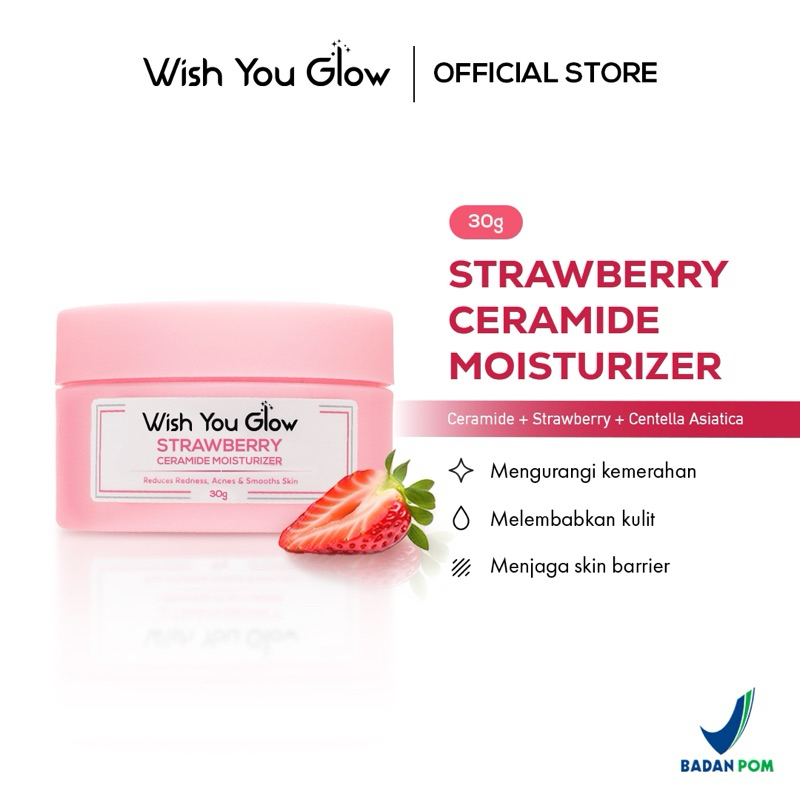 WISH YOU GLOW - Strawberry Ceramide Skin Barrier Moisturizer Gel Cream 30gr Pelembab Wajah Memperbaiki Skin Barrier dan