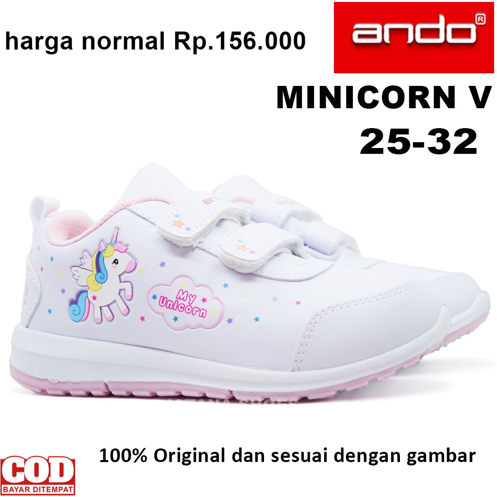 SEPATU ANAK PEREMPUAN PAUD TK SD USIA 3 4 5 6 7 TAHUN ANDO MINICORN KUDA PONY PEREKAT SEPATU SEKOLAH ANAK CEWE