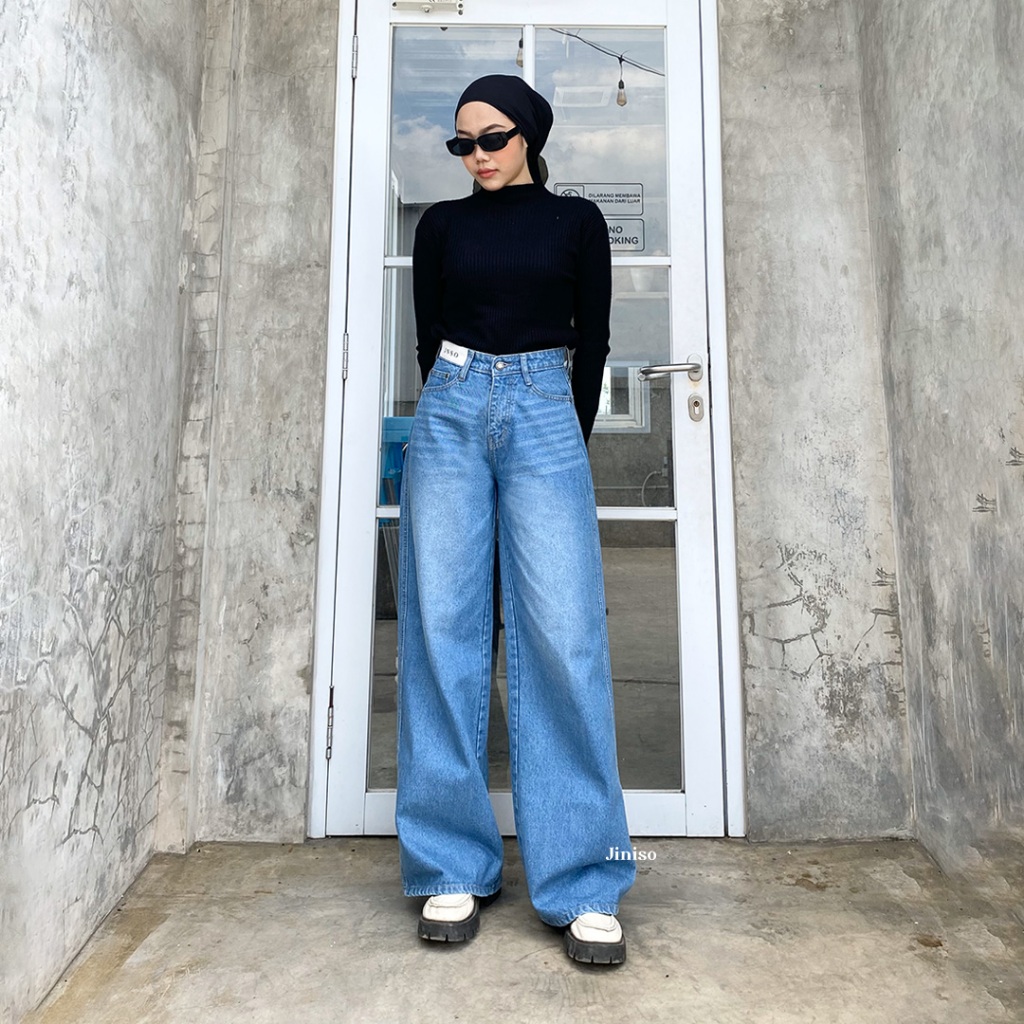 PROMO JINISO HIGHWAIST OVERSIZE BAGGY LOOSE JEANS 772 WEEKEND