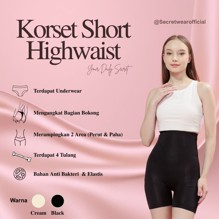 Korset Celana Secret Wear Official - Korset Celana Wanita Highwaist Short Shaper Pants Seamiliess Pelangsing Perut Kors