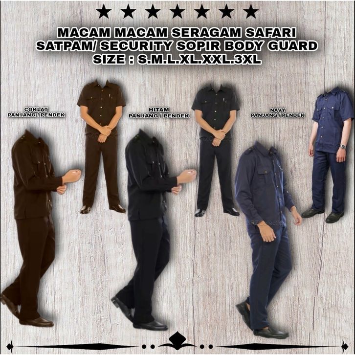Baju Security SERAGAM SAFARI / STELAN SAFARI SATPAM / SAFARI PENDEK / SAFARI PANJANG / SAFARI COKLAT