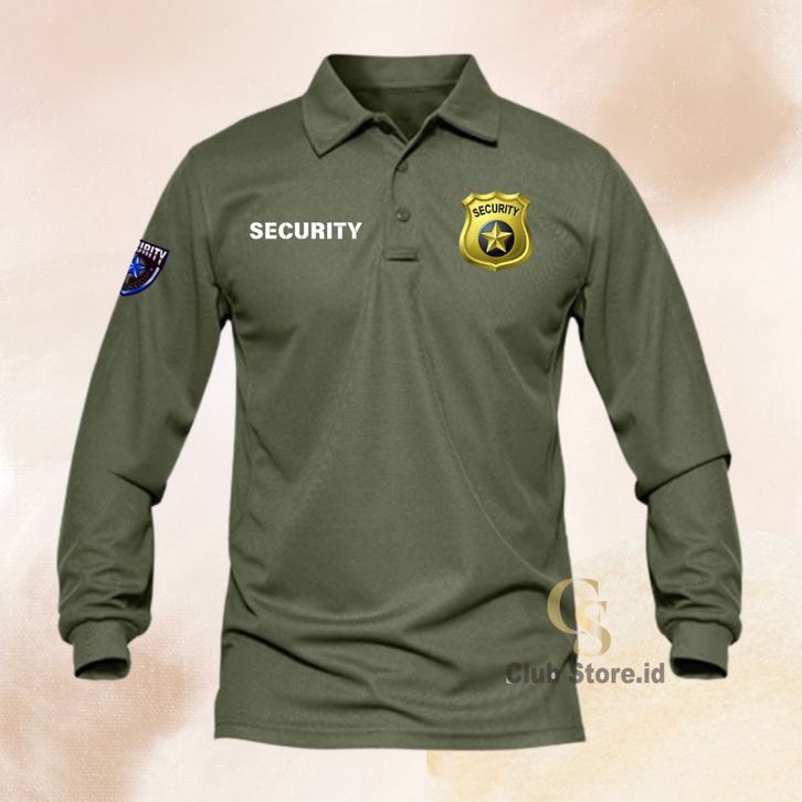 Baju Security Terbaru Polo Shirt Security Logo depan Dan di Tangan Baju Kaos Atasan Lengan Panjang Sablon DTF