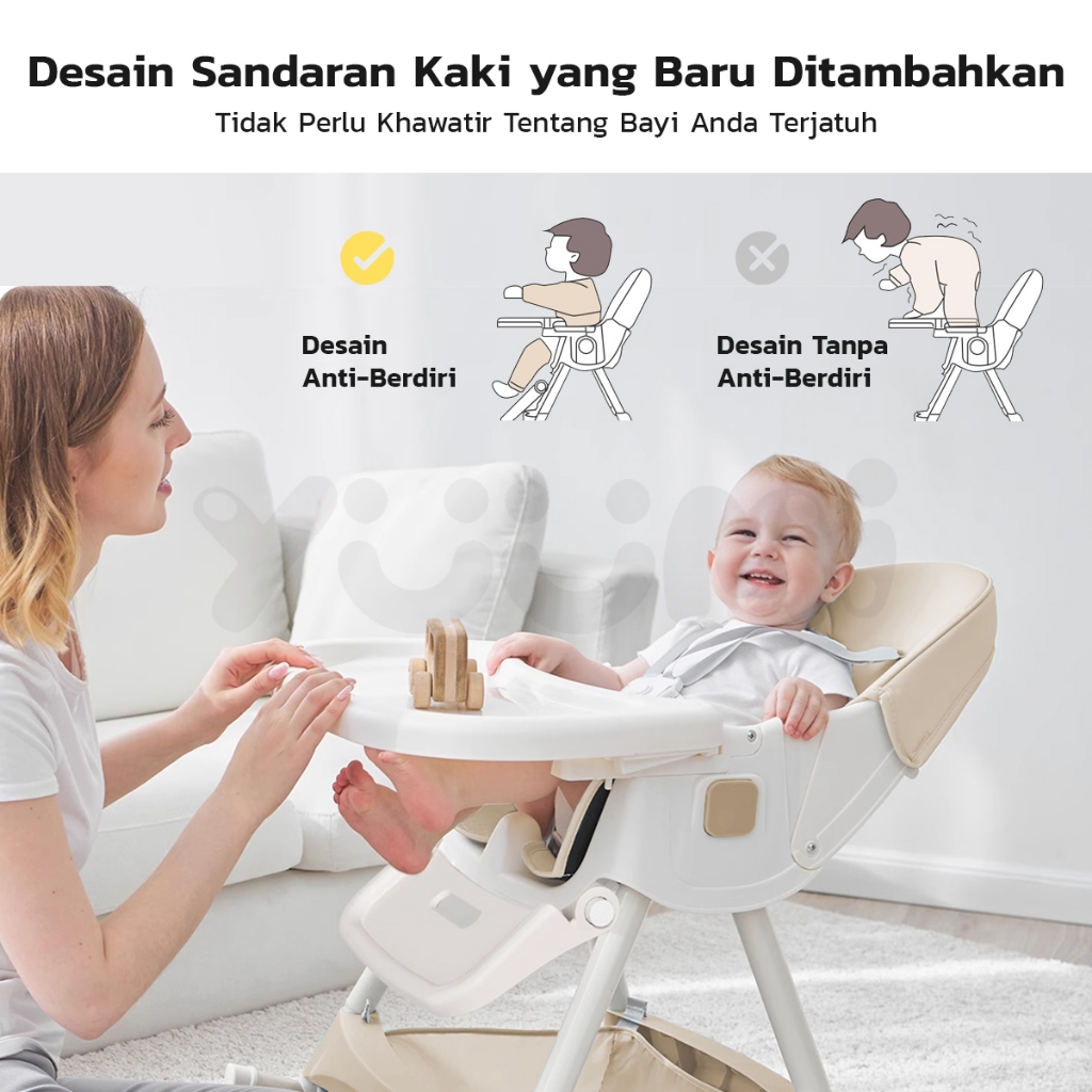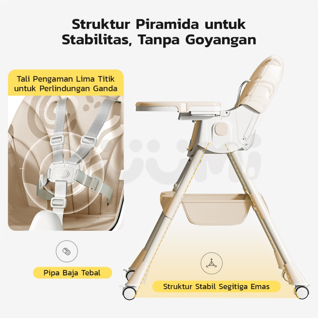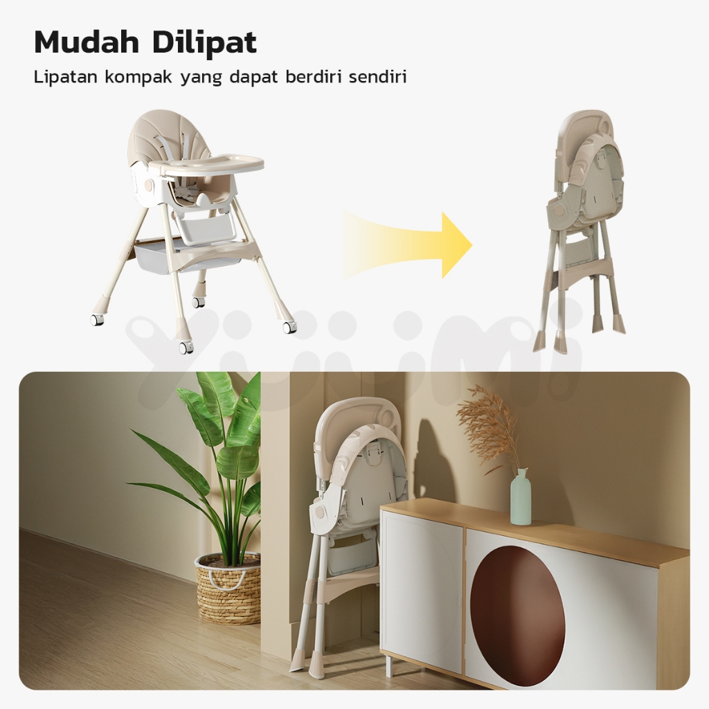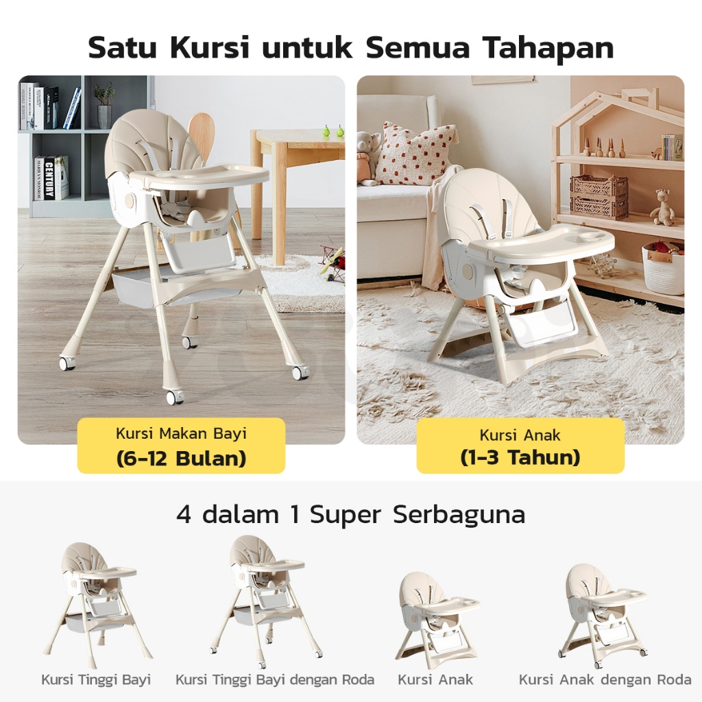 Yuumi Kursi Makan Bayi Lipat & Beroda - Tinggi Dapat Diatur 4in1 Multifungsi untuk Anak sofa Chair Tempat Duduk Makan ba