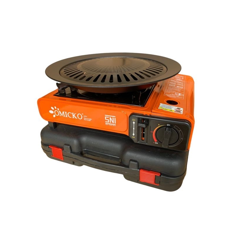PAKET KOMPOR PORTABLE OMICKO 2 IN 1 / KOMPOR BBQ PORTABEL PLUS COVER SNI