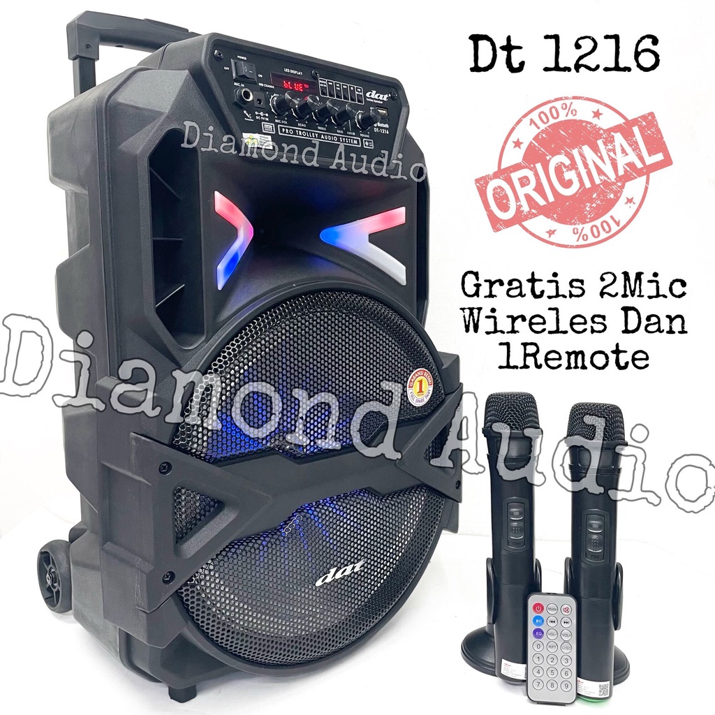 Speaker Portable Dat Dt1216 Usb Bluetooth Original Wireless 12 Inch Dt 1216 Free 2Mic ( Bayar Ditempat ) 897Q F12106 858