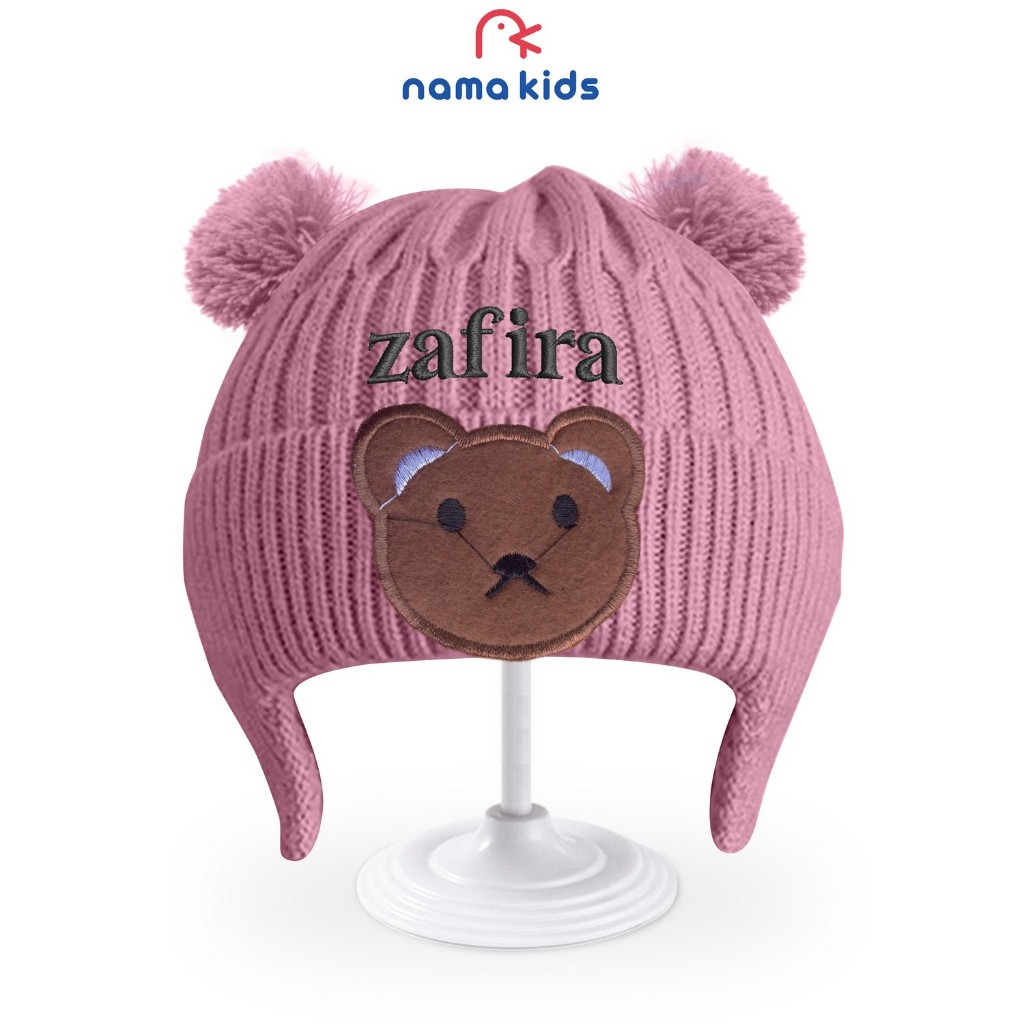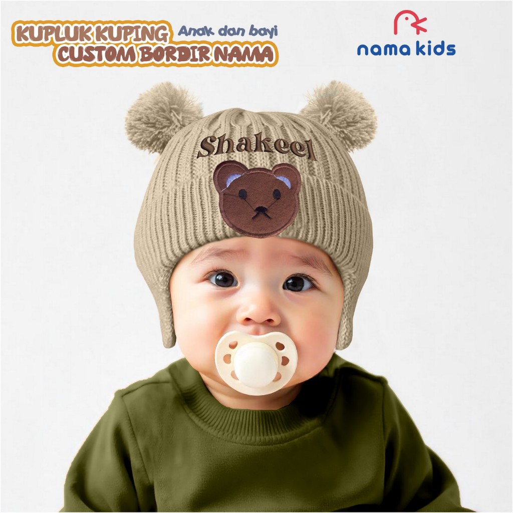 Kupluk Bordir Nama Bayi Kuplut Rajut Anak Usia New Born Rajut Kuping Karakter Beruang Costum Bordir Nama Kupluk Pompom B