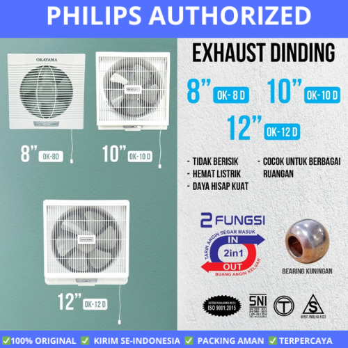 Kipas Angin Exhaust fan/ Hexos Dinding OKAYAMA 8/10/12 INCH - OK8D/ OK10D / OK12D Penyedot Udara Ruangan Biar Tidak Pana