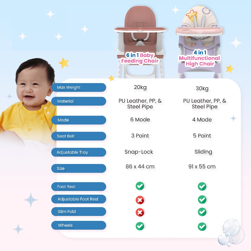 Baby Chair Kursi makan bayi Tempat duduk bayi IB-2206 6in1 minimalis sugar baby pliko space portable