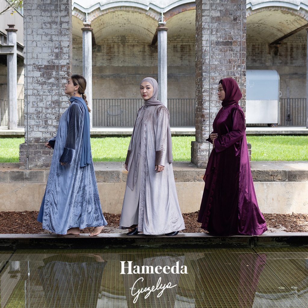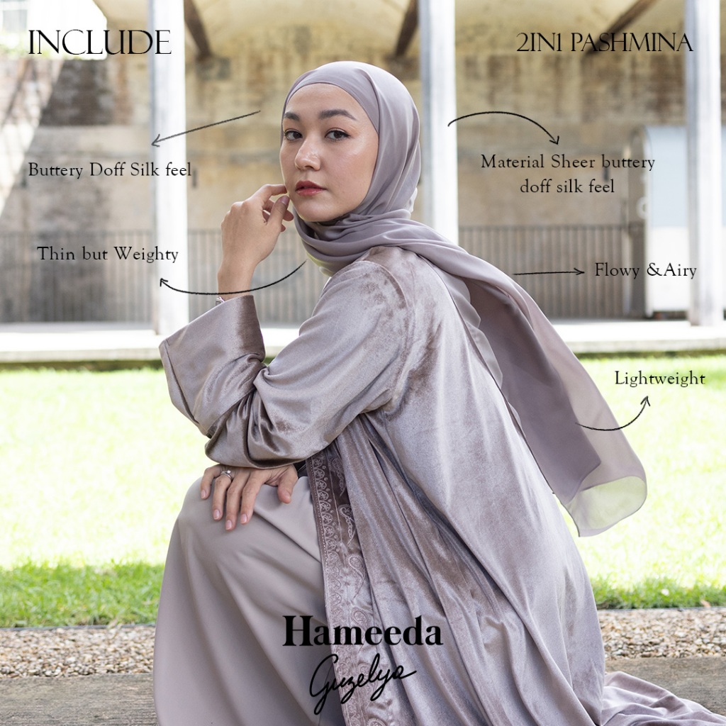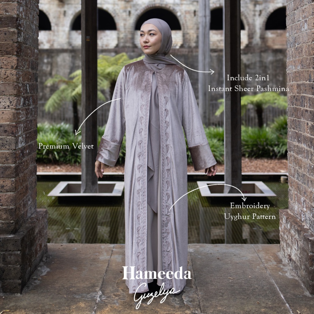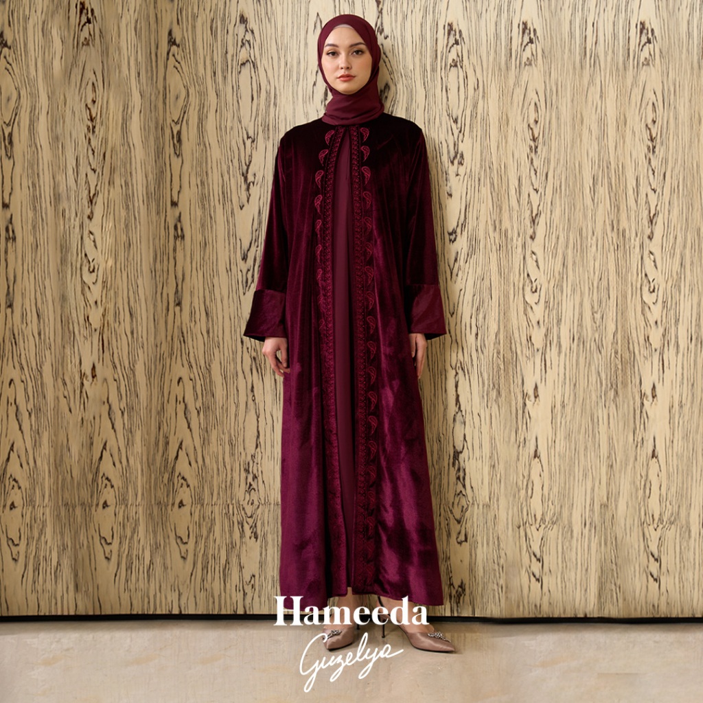 HAMEEDA X GUZELYA - ARMOR | VELVET ABAYA OUTER WITH 2IN1 T SHEER PASHMINA