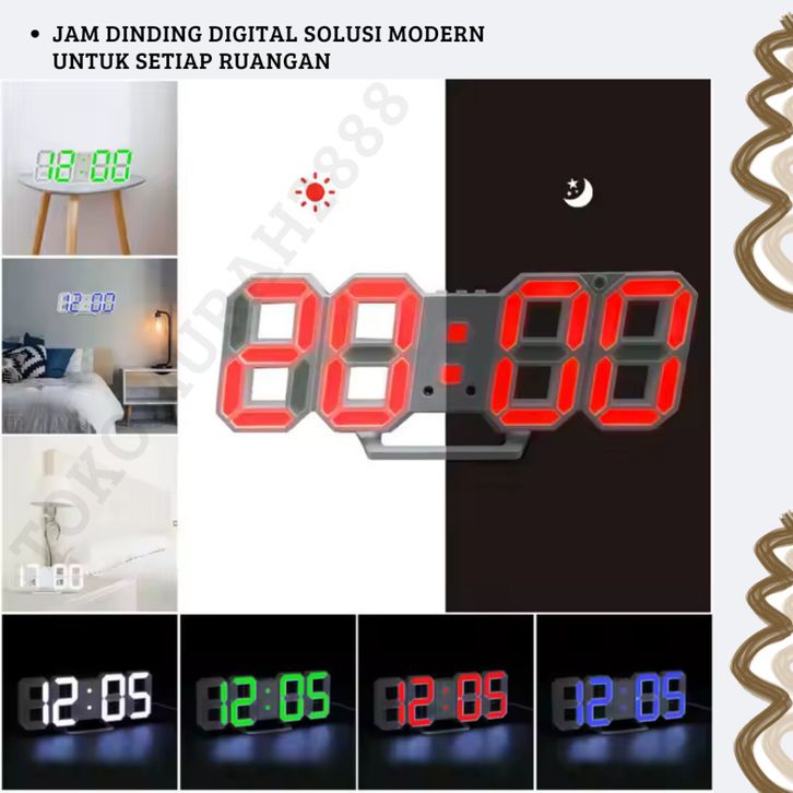 JAM DINDING DIGITAL LED 3D BESAR MODERN ALARM