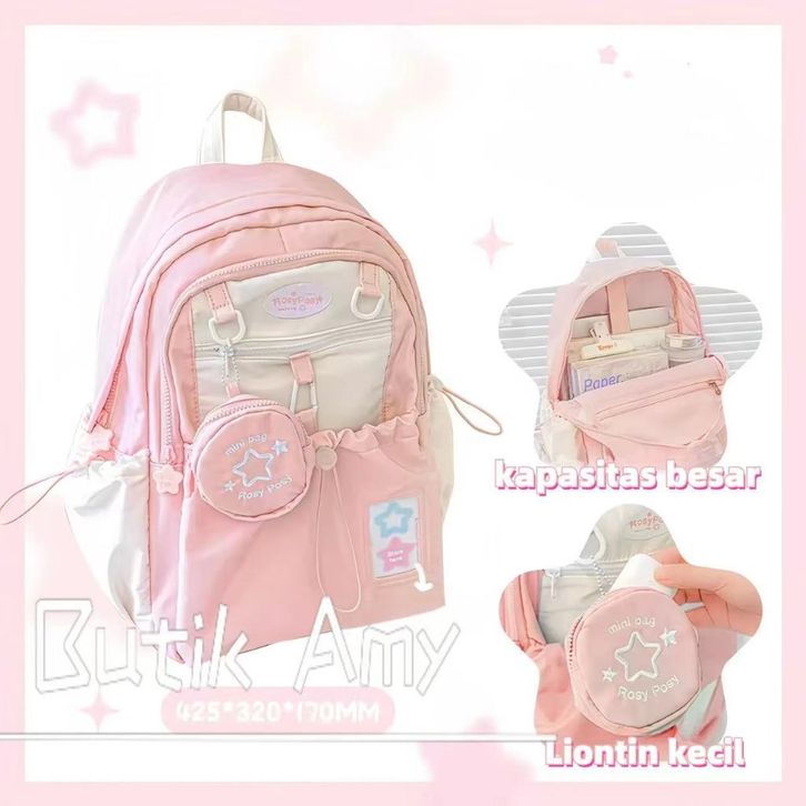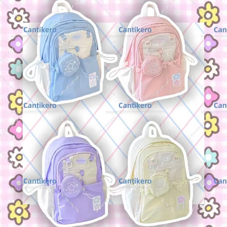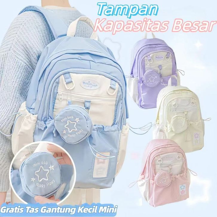 Tas Sekolah Anak 【Kirim Tas Gantung】Tas Sekolah Ins Wanita Besar Korea Import Serut Siswa Perempuan Volume Tinggi Tas