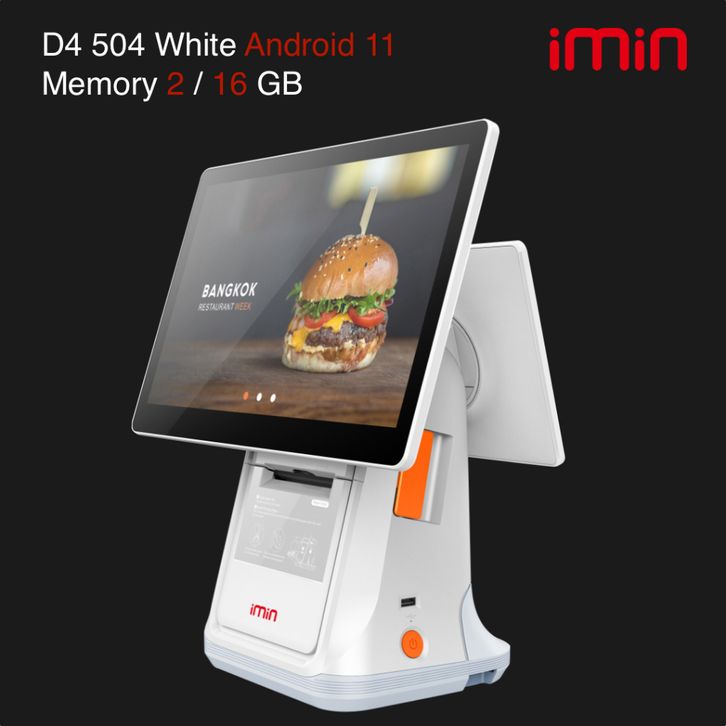 Smart Mesin Kasir Original IMIN Android POS Machine Desktop Mesin Kasir iMin 2G/16G D4 504 White Edition Dengan Printer
