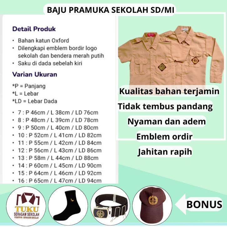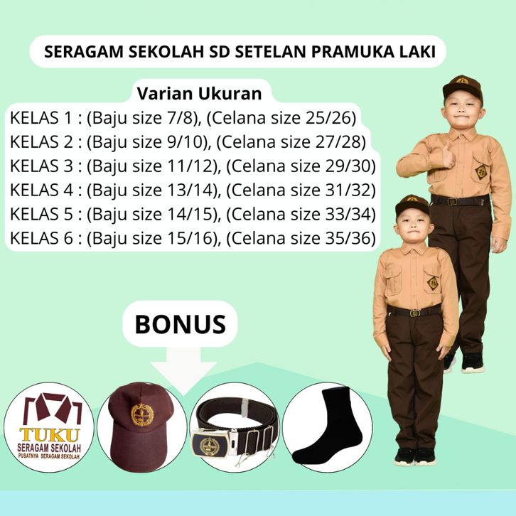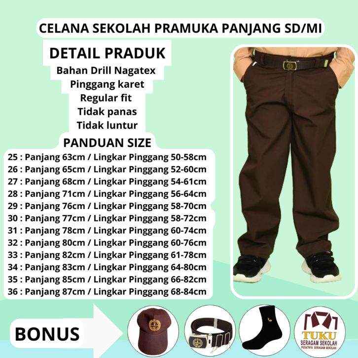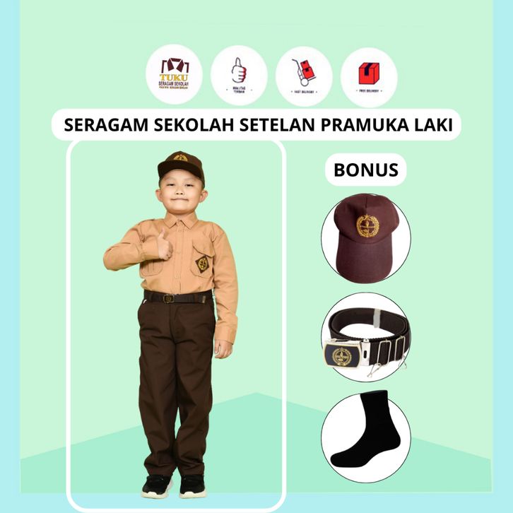 Baju Seragam SD Seragam Sekolah Baju Pramuka Celana Sekolah SD Panjang Warna Coklat Pinggang Karet Laki Laki Pria Setel