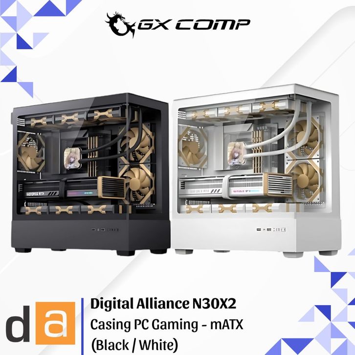 Case Komputer Original Digital Alliance N30X2 | Casing PC mATX - Micro ATX | Case CPU Gaming - Black / White Tempered G