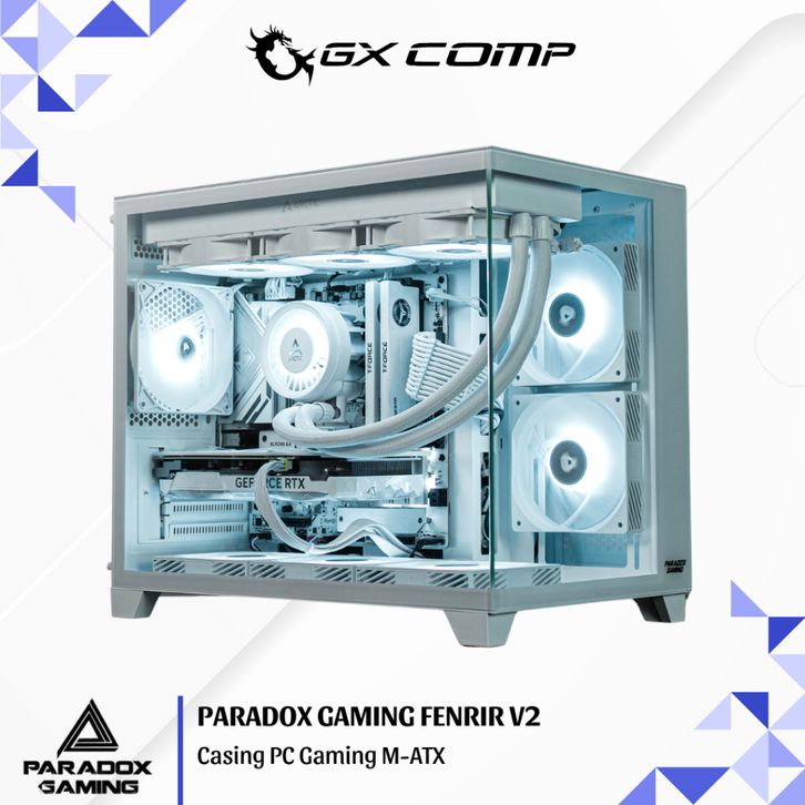 Case Komputer Original Paradox Gaming Fenrir V2 Black / White Free 1 Fan ARGB - Casing PC M-ATX | Case PC Gaming