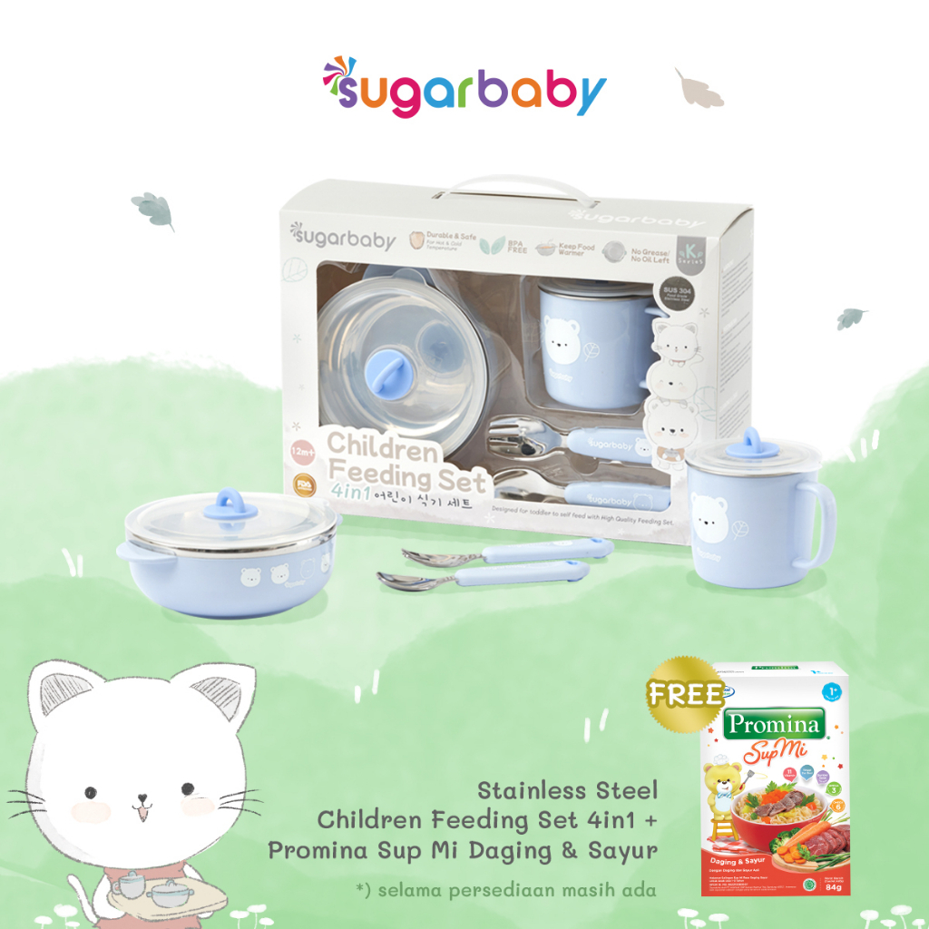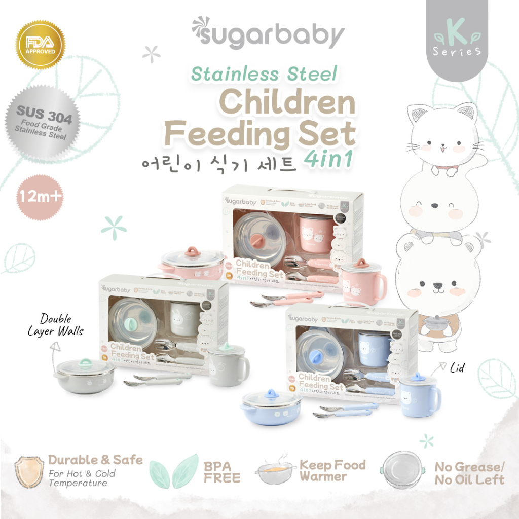 PROMO SUGAR BABY STAINLESS STEEL CHILDREN FEEDING SET 4IN1 (KSERIES)SET ALAT MAKAN BAYIPERLENGKAPAN MPASI BAYI ANAK