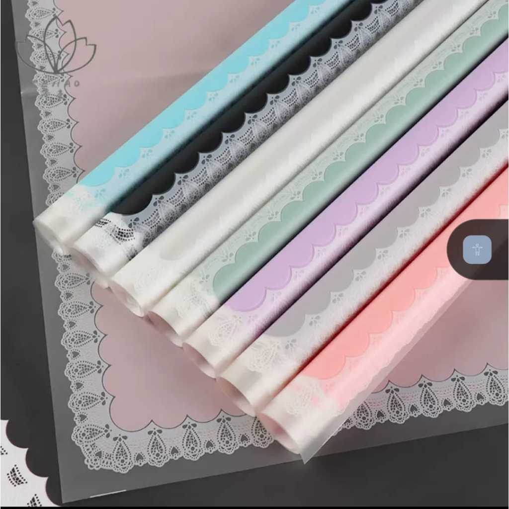 20 LEMBAR Kertas Buket Bunga Motif Renda Lace Border Cellophane Flower Wrapping Paper