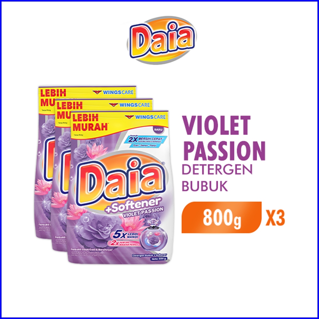 Daia Detergen Bubuk Softener Violet Passion 800 G X3