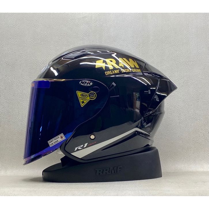NHK R1 Max Solid Black Glossy || Paket Ganteng Visor Iridium I Helm Half Face Double Visor
