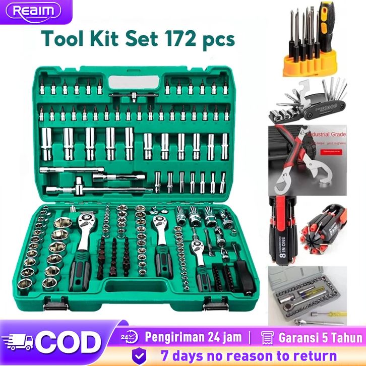 Reaim Set Kunci 1/2 Inchi Sok Kunci Shock 172 Pcs Mobil Motor Lengkap Socket Tool Kit Set Pas Ring