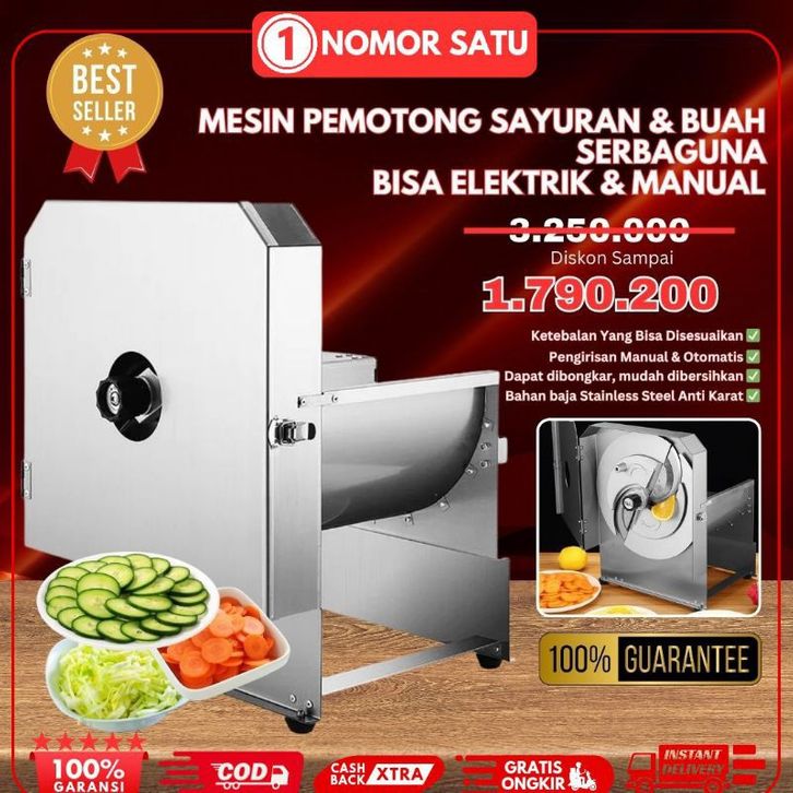 Mesin Pemotong Sayuran Wortel, Kentang, Bawang, Singkong, Basreng Elektrik Otomatis Multifungsi