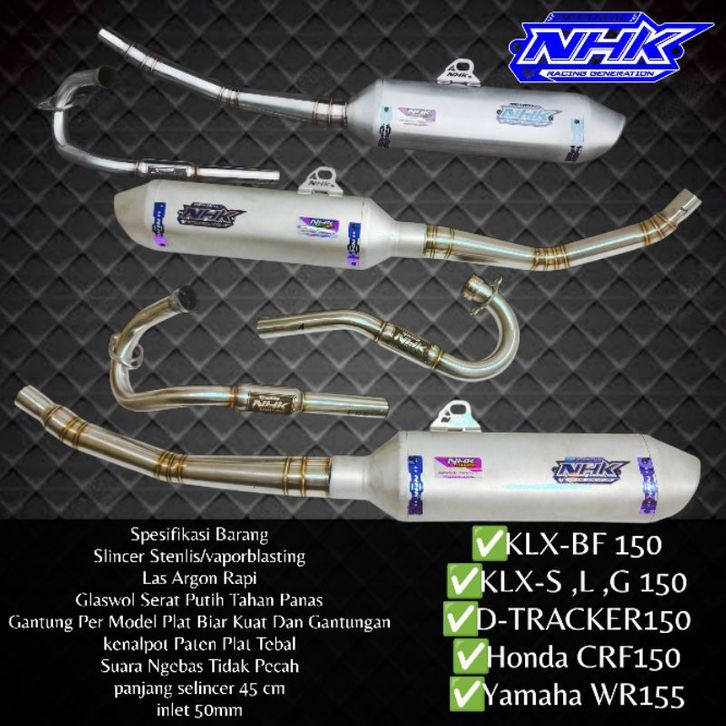 KNALPOT NHK PNP KLX 150 230 250 DTRACKER 150 CRF 150 230 WR 155 FULL STAINLESS EL KTM