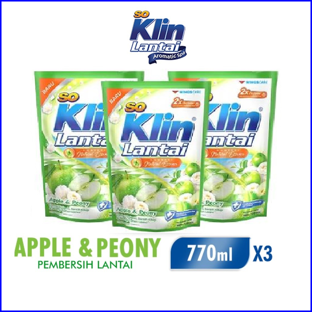 Soklin Pembersih Lantai Hijau Muda Apple Peony 770 Ml X3
