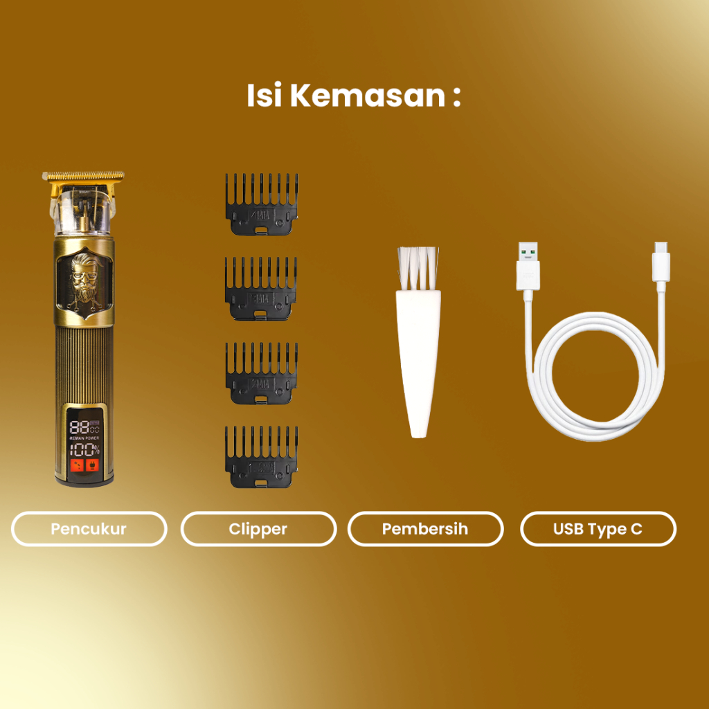 SUARNCOR (T12-03) Trimmer Rambut Elektrik – Pisau Tajam, Layar LED, 1200mAh, USB-C, GARANSI 1 TAHUN